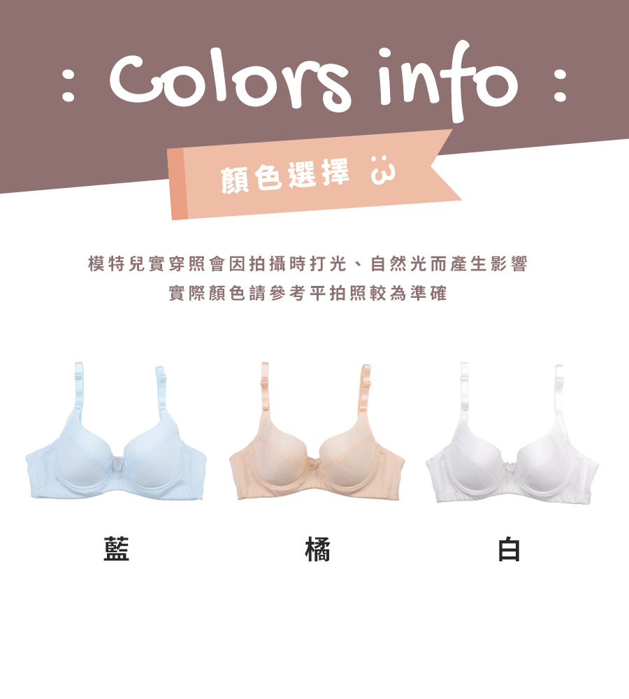 | BRA233 | 舒活漫遊內衣 | 藍,白,橘 |