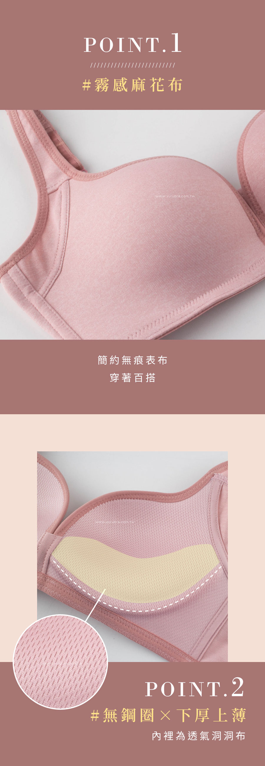 ★挑戰無鋼圈爆乳極限,舒適穿著也能打造深溝! ★廣受喜愛的麻花布,視覺簡約大方 ★一體成型杯模,微下厚可上托胸肉 ★零距離彈性布拉近胸距,讓胸部呈現最完美的狀態 ★超Q棉彈的下厚上薄,聚攏集中效果更升級 ★側邊魔翼設計,可完整包覆副乳 ★階梯式鬆緊止滑肩帶,加寬穿著更減壓 ★台灣製造,品質保證