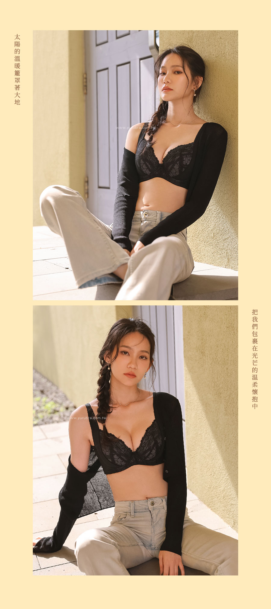 蕾絲:尼龍64%,嫘縈22%,彈性纖維14% 面料:尼龍75%,彈性纖維25% 杯裡:聚酯纖維65%,棉35%