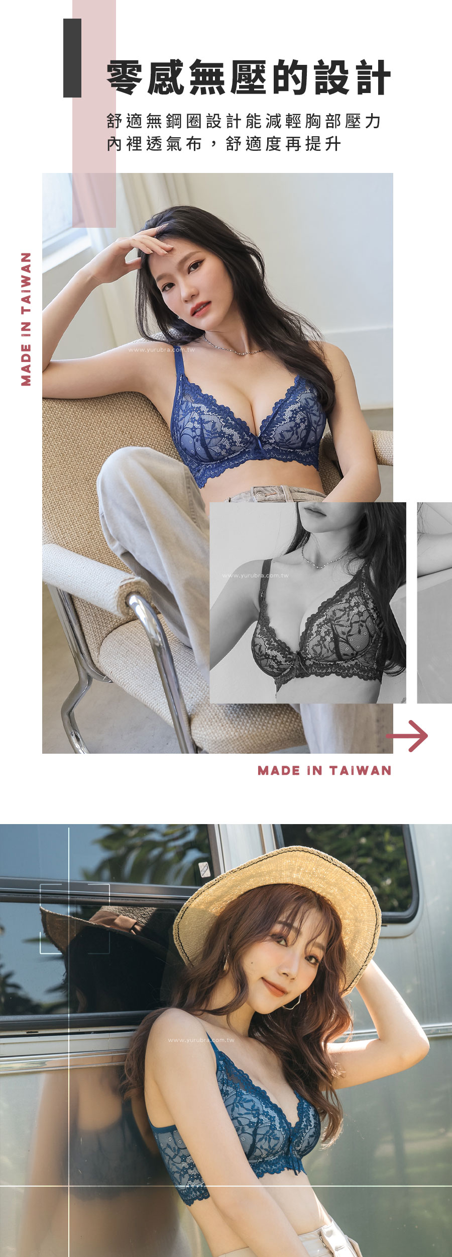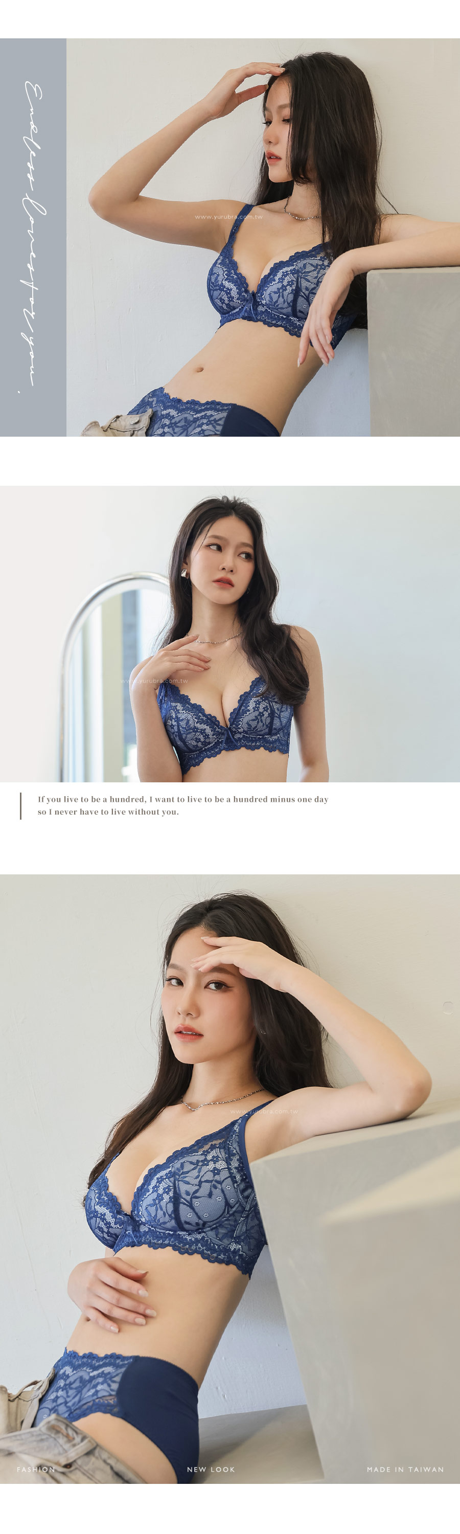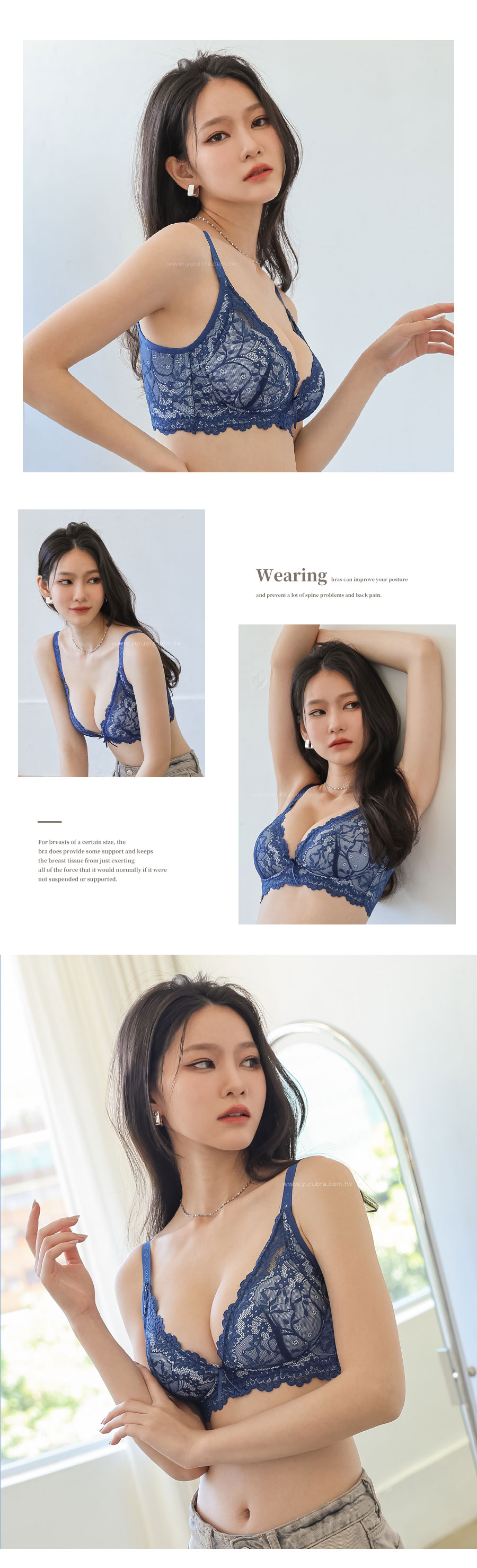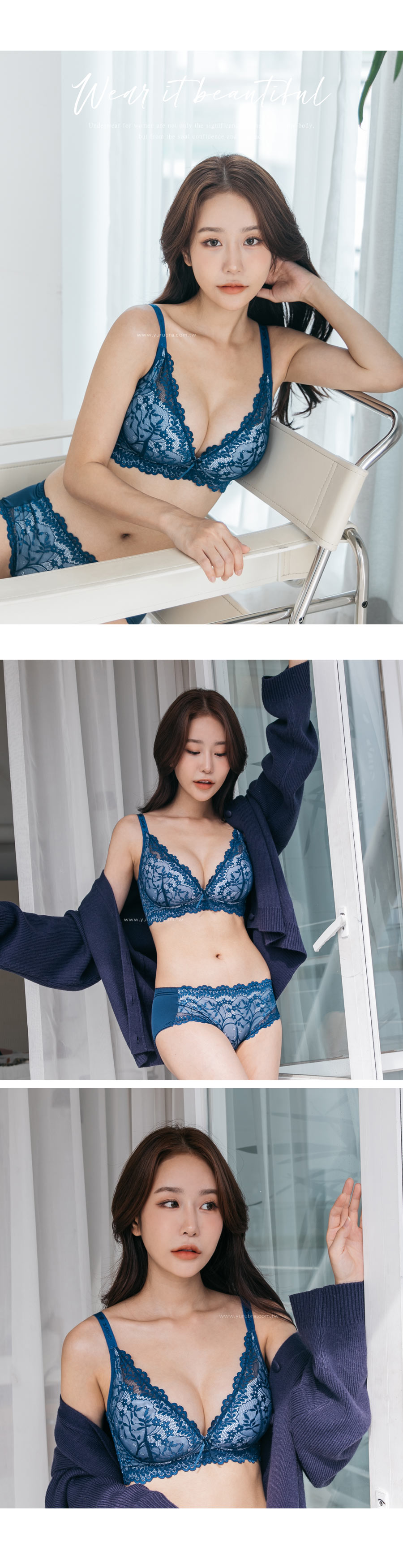 ★好穿到再推新色~深邃的藍色突襲~~ ★優雅蕾絲從前面延伸到後背片,整體圍繞出性感美麗 ★3/4罩的水滴型罩杯,軟Q立體,貼合度超好 ★舒適無壓的穿著感,盡情享受無鋼圈的設計 ★杯模內裡洞洞透氣布,穿著舒適透氣 ★下土台採用1.8公分鬆緊帶,加強穩定服貼不移位 ★加強包覆副乳,側邊曲線收攏,改善副乳豐滿胸部 ★脅邊雙膠條加高,穩定包覆效果極佳 ★後背微V字剪裁,穩定且不易滑肩 ★台灣製造,品質保證
