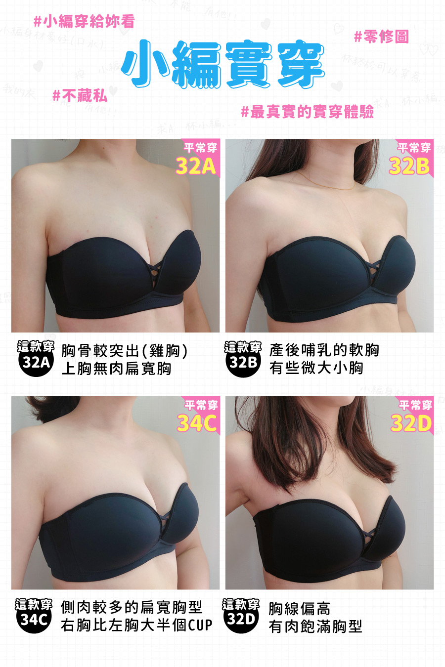 ★若主要想"不拆肩帶"穿著,此款尺寸建議拿大一個罩杯! A罩:普通A B罩:普通B C罩:普通C D罩:普通D