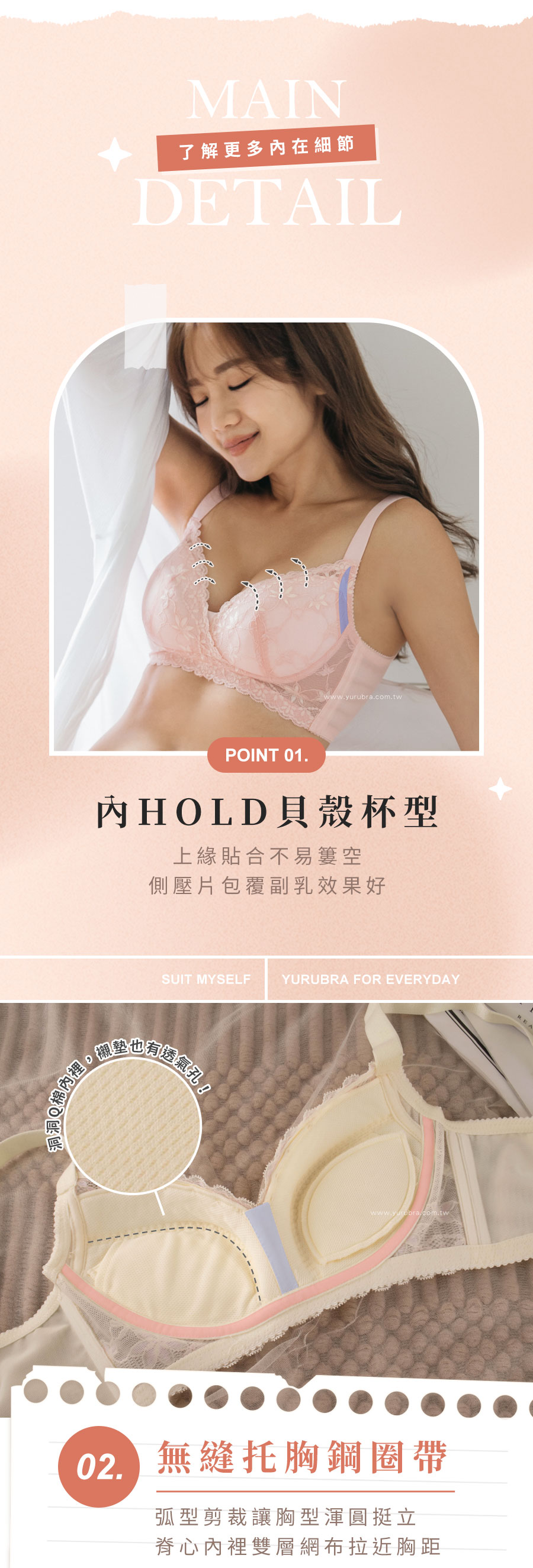 ★包容力MAX無鋼圈內衣,從B到小F罩杯一網打盡 ★零脊心無縫托胸鋼圈帶,讓妳體驗舒適零著感 ★內HOLD貝殼杯模,上緣貼合不易壓胸也不易簍空 ★杯模弧型中心線剪裁,胸型挺立又渾圓 ★內裡洞洞透氣Q棉,膨軟舒適可防尷尬激凸 ★脊心採雙層六角網布,強力拉進胸距防止外擴 ★蕾絲在脊心處做交叉設計,二度集中更加性感 ★下土台採1.8公分寬的鬆緊帶,穿著好穩定 ★防副乳側壓片設計,對腋下浮肉圈包覆效果佳 ★雙層六角網布背片,包覆與舒適一次到位 ★台灣製造,品質保證