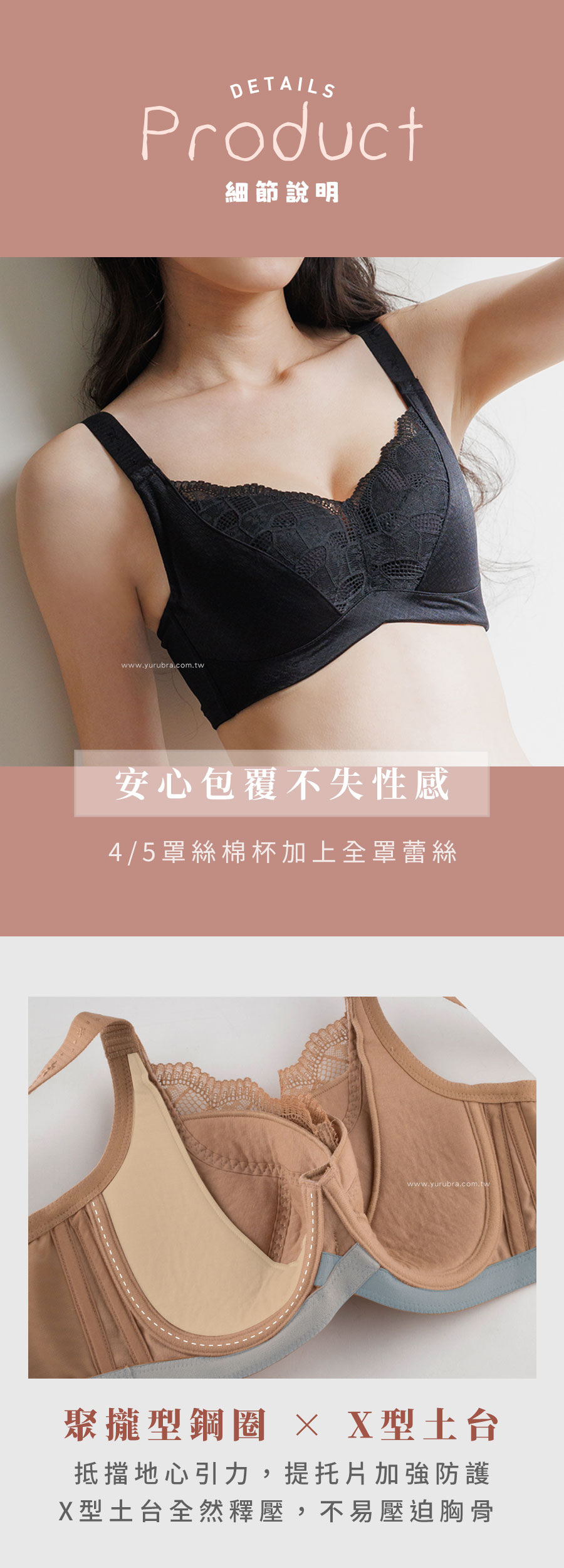 ★最了解大胸水水的內衣,終於誕生了! ★想要前不爆炸、上不外溢?OK! ★想要防震,更要舒適全然釋壓?了解! ★想要全面包覆,一樣性感美麗?太棒了! ★想要顯瘦,也要胸大不垂、緊實上提?沒問題! ★想要運動不過度晃動、穩定不輕易滑肩?可以的! ★想要如訂製內衣般的穿著體驗?就是這一件! ★穿上它,解決所有胸大的困擾! ★台灣製造,品質保證
