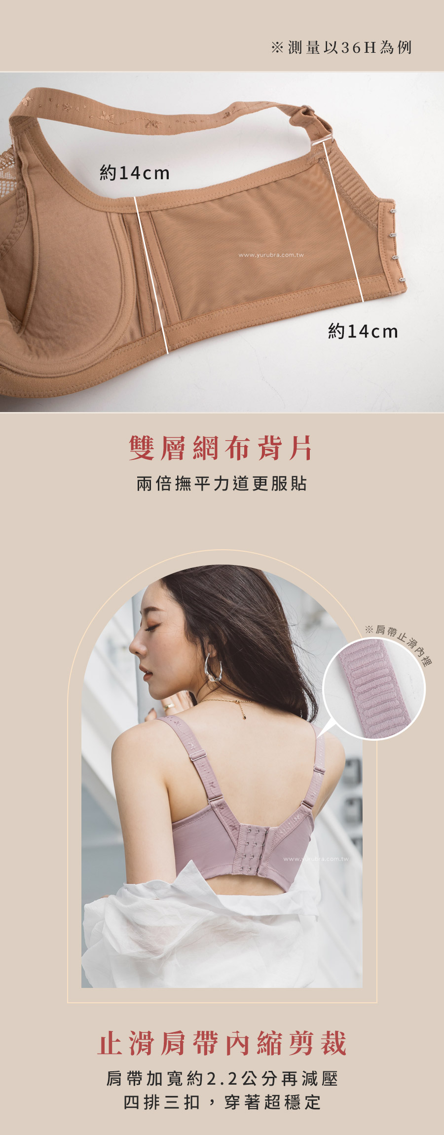 ★最了解大胸水水的內衣,終於誕生了! ★想要前不爆炸、上不外溢?OK! ★想要防震,更要舒適全然釋壓?了解! ★想要全面包覆,一樣性感美麗?太棒了! ★想要顯瘦,也要胸大不垂、緊實上提?沒問題! ★想要運動不過度晃動、穩定不輕易滑肩?可以的! ★想要如訂製內衣般的穿著體驗?就是這一件! ★穿上它,解決所有胸大的困擾! ★台灣製造,品質保證