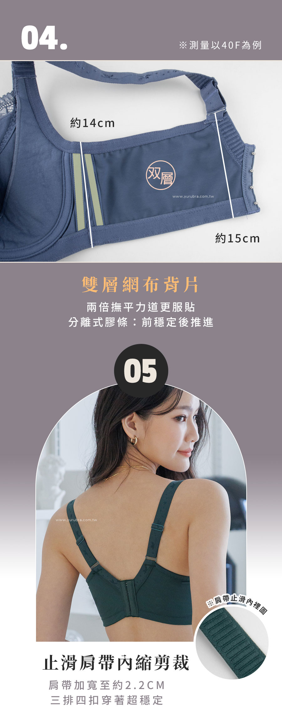 ★最了解大胸水水的內衣,終於誕生了! ★想要前不爆炸、上不外溢?OK! ★想要防震,更要舒適全然釋壓?了解! ★想要全面包覆,一樣性感美麗?太棒了! ★想要顯瘦,也要胸大不垂、緊實上提?沒問題! ★想要運動不過度晃動、穩定不輕易滑肩?可以的! ★想要如訂製內衣般的穿著體驗?就是這一件! ★穿上它,解決所有胸大的困擾! ★台灣製造,品質保證