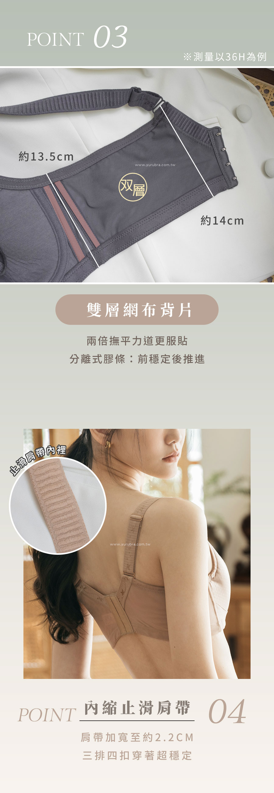 ★最了解大胸水水的內衣,終於誕生了! ★想要前不爆炸、上不外溢?OK! ★想要防震,更要舒適全然釋壓?了解! ★想要全面包覆,一樣性感美麗?太棒了! ★想要顯瘦,也要胸大不垂、緊實上提?沒問題! ★想要運動不過度晃動、穩定不輕易滑肩?可以的! ★想要如訂製內衣般的穿著體驗?就是這一件! ★穿上它,解決所有胸大的困擾! ★台灣製造,品質保證