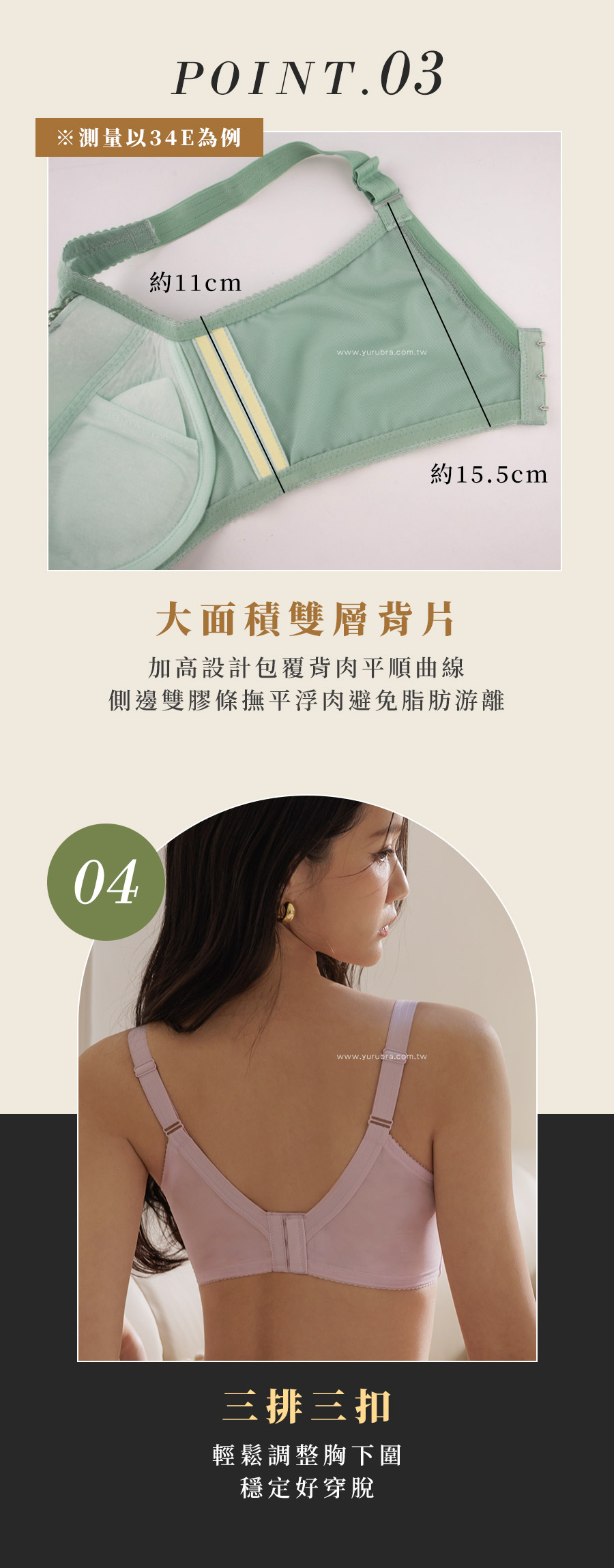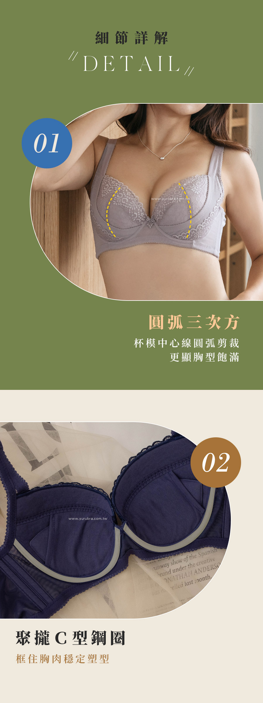 ★圓弧三次方,為妳打造圓潤美胸 ★杯模中心線圓弧剪裁,打造圓潤飽滿胸型 ★外提托帶從脊心到肩耳做圓弧拉揚,上托側推集中再升級 ★聚攏圓弧C型鋼圈,框住胸肉穩定塑型 ★側邊雙膠條設計,撫平浮肉避免脂肪游離 ★雙層背片加高,大面積包覆背肉平順曲線 ★三排三扣,輕鬆調整、穩定好穿脫 ★台灣製造,品質保證