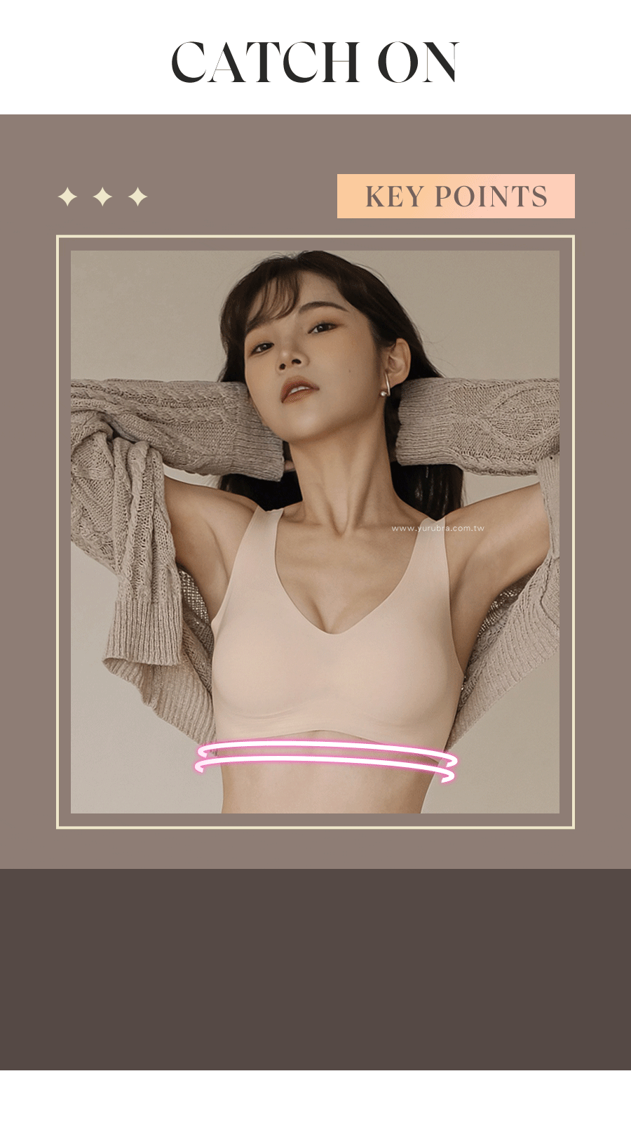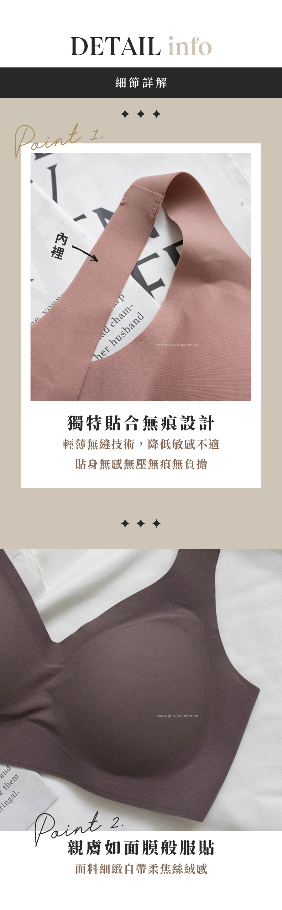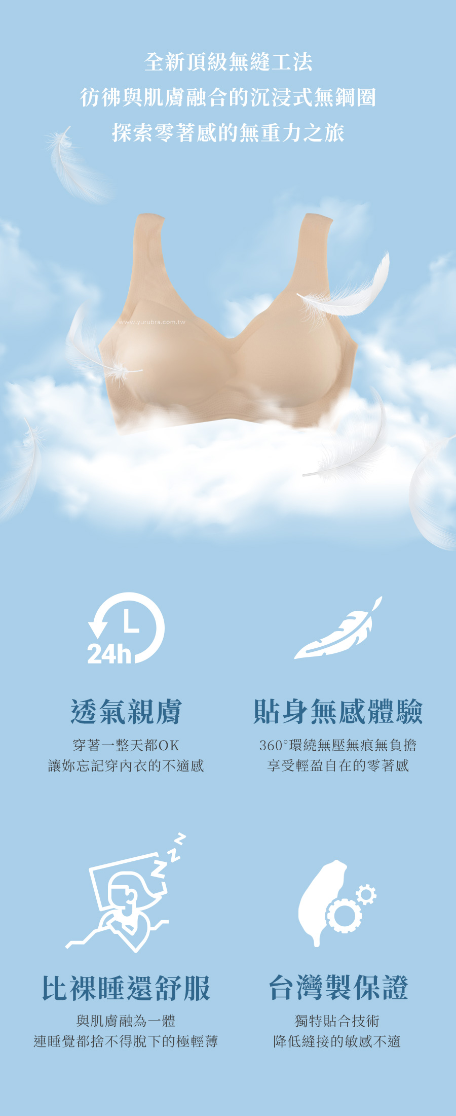★貼身無感無壓無痕無負擔,自由伸展不設限 ★面料任意裁設計,輕薄無縫裁邊 ★獨特貼合技術,降低縫接的敏感不適 ★胸下特殊連體薄杯,拉近胸距更立體渾圓 ★超透氣的穿著體感,讓妳的肌膚每一刻都在呼吸 ★一片式剪裁360度環繞,完整包副乳與背肉,同時享受輕盈自在的零著感 ★俐落的前V後U剪裁,四排三扣下圍調節性強 ★加寬的本布肩帶,平順輕盈舒適 ★材質建議使用手洗或洗衣袋來清潔,減少拉扯延長衣物壽命 ★台灣製造,品質保證