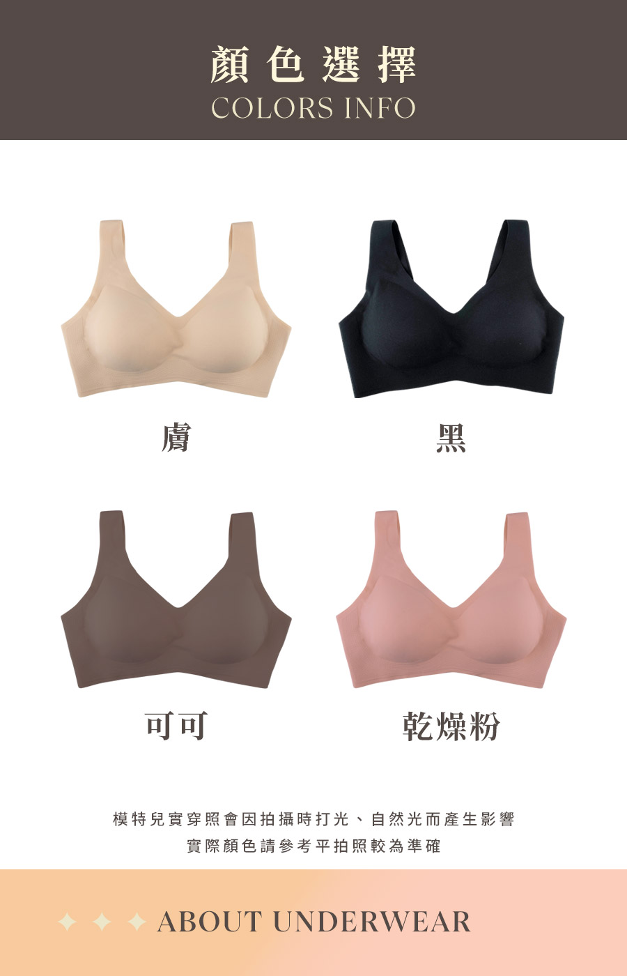 | BRA680 | 無限零著肌內衣 | 黑,膚,可可,乾燥粉 |