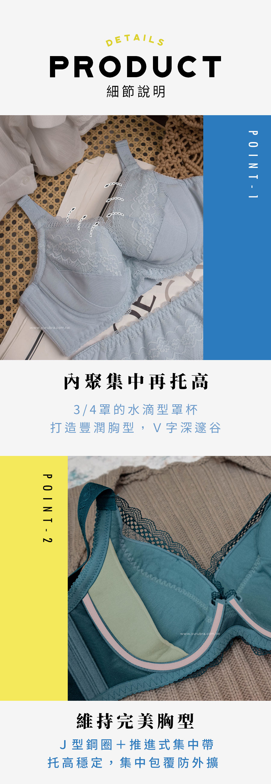 ★關關守、道道推!打造豐潤胸型,V字深邃谷! ★創新的挺立花苞剪裁杯模,側推內聚集中再托高 ★3/4罩的水滴型罩杯,打造上托挺立胸型 ★胸兩側極為包覆,杯緣服貼不壓胸、不簍空 ★內推進的集中帶,集中包覆防外擴防下垂 ★採用透氣絲棉,穿著舒適親膚 ★J型鋼圈,前低舒適好穿,側高維持完美胸型 ★分段推進式背片,漸進撫平背肉 ★腋下雙膠條設計,穩定側邊不易走位 ★U型美背+三排三扣,美化背部曲線,增加內衣穩定度 ★台灣製造,品質保證