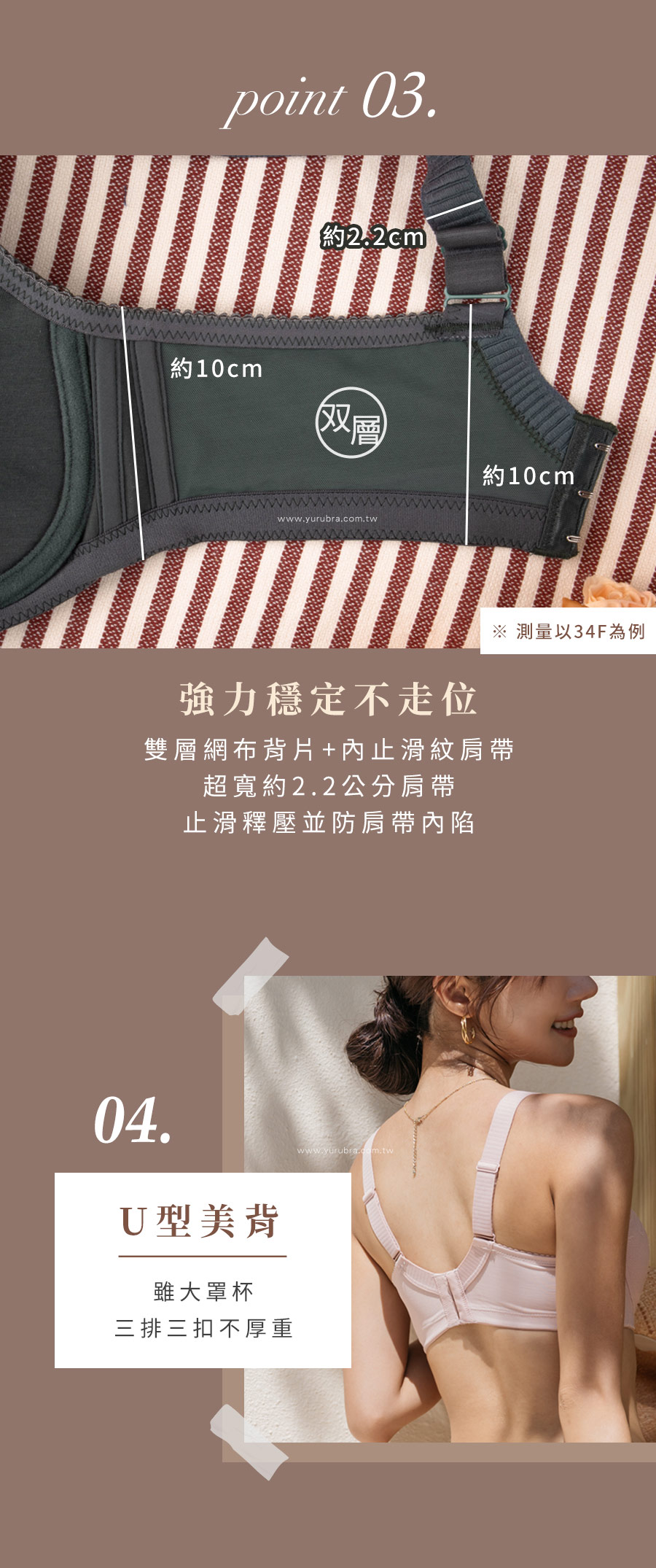 ★圓如球、穩如山、美如仙 ★神奇大罩!叫內衣界再翻頁! ★創意線結蕾絲與花邊疊合,完美詮釋百變的你 ★特殊升級U型鋼圈,支撐胸型再拉提 ★獨特剪裁簍空帶,打造完美透氣空間 ★土台緊帶加寬約1.8公分,符合胸下的W型剪裁,穩定與貼合 ★X土台釋壓帶,貼合穩定又釋壓 ★強力圓弧內提托,強力守住,分毫不容移位走失 ★超寬約2.2公分止滑肩帶,釋壓並防肩帶內陷 ★強力雙層網布背片,強力穩定不走位 ★細緻的蕾絲,收尾處採創意線結設計,屬正常現象請勿裁剪
