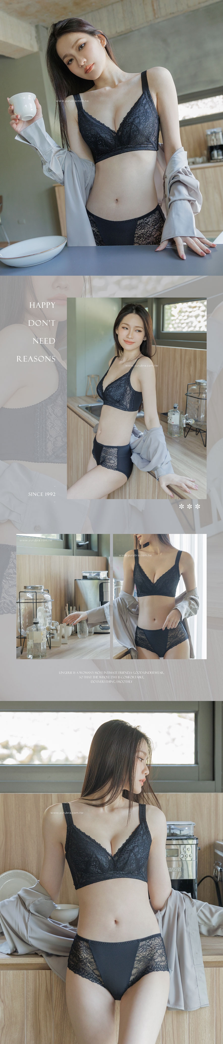 蕾絲:彈性纖維13%,嫘縈15%,尼龍72% 面料:彈性纖維25%,尼龍75% 杯裡:聚酯纖維65%,棉35%