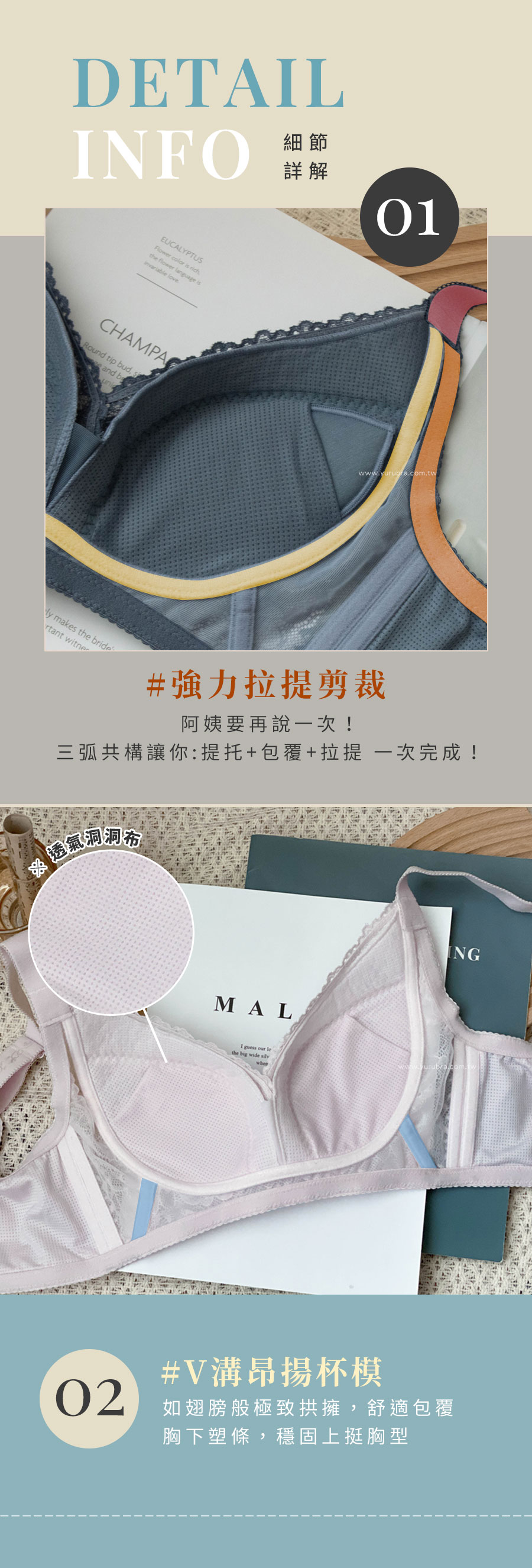 ★絲棉洞洞薄杯,極度透氣舒適 ★無鋼圈布條×腋下緊帶×肩帶,三弧共構,強力拉提胸線 ★昂揚杯型,如天使翅膀,極致拱擁包覆~ ★胸下45°塑條,穩固上挺胸型 ★內裡洞洞透氣布,穿著舒適不易悶熱 ★無鋼圈天鵝絨布條,親膚柔軟,胸骨凸、雞胸、胃凸的女孩都適合! ★脊心網布,更拉近胸距 ★胸前V型剪裁,柔軟的布料也適合當替代的哺乳內衣 ★大U型背片,舒適包覆背部 ★台灣製造,品質保證