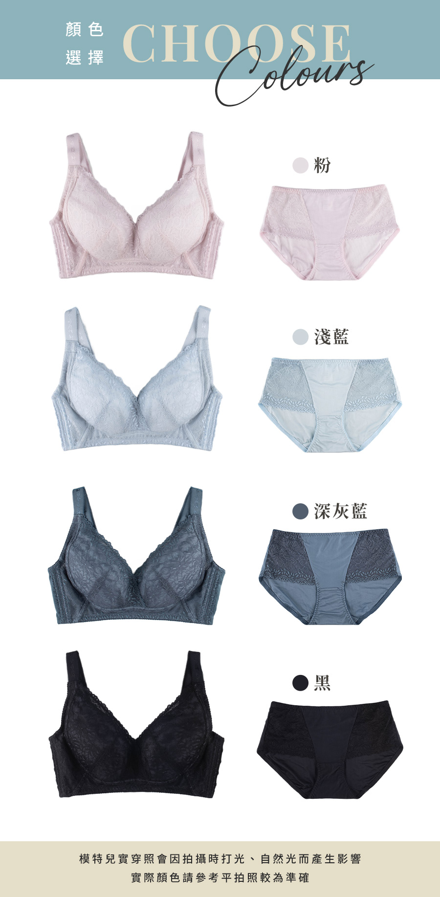 | BRA718 | 三弧奇蹟內衣 | 淺藍,黑,深灰藍,粉 |