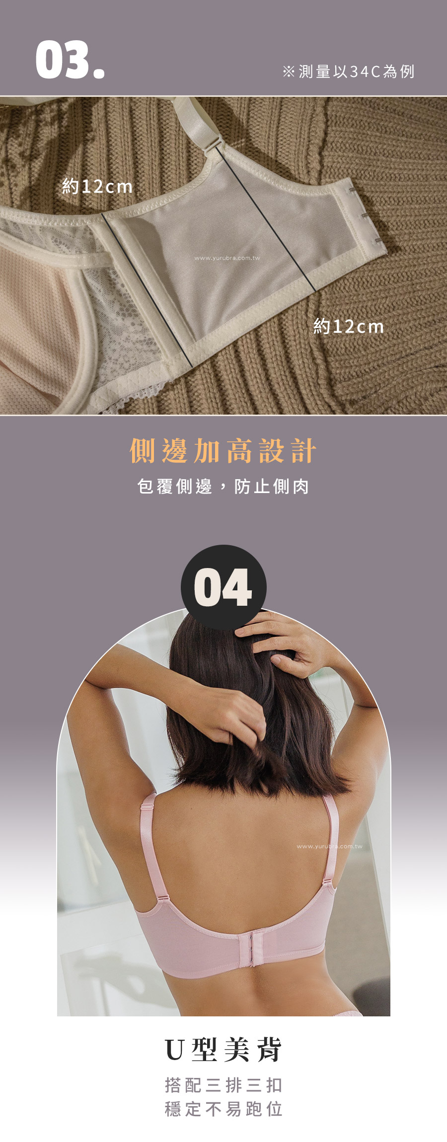 ★蕾絲淡雅迷濛的低飽和色調,耐看又好搭衣服 ★低脊心J型軟鋼圈,舒適不易壓迫 ★杯上緣、副乳、腋下,你想要的包覆通通都有 ★內裡洞洞透氣布,穿得舒爽不悶熱 ★下厚上薄軟Q泡棉設計,填充補正讓胸部更完美集中 ★腋下雙膠條設計,穩定撫平腋下肉肉 ★U型美背×六角網布背片,撫平兼具透氣感 ★台灣製造,品質保證