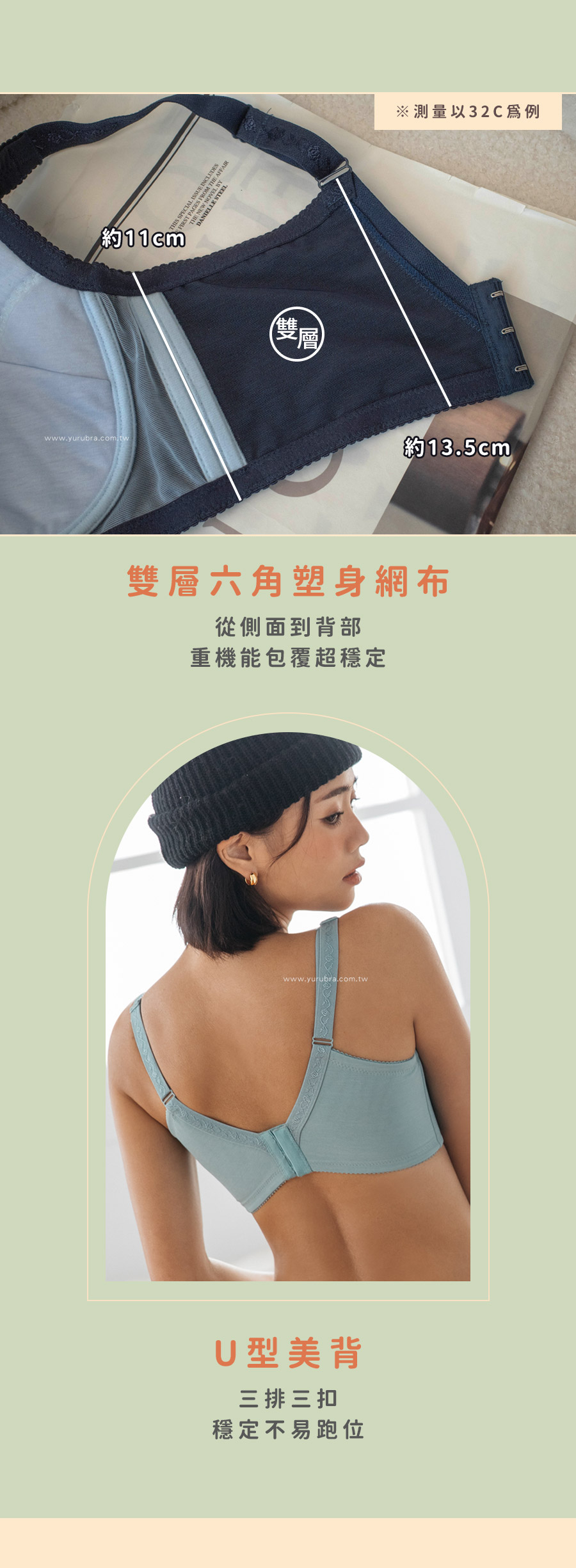 ★經典再升級!加強提托,再造渾圓超集中! ★前低側高杯模,圓弧上托,渾圓又貼合 ★月牙弧形外提托,280丹網布更加強拉提! ★上緣呈現V字剪裁,對上胸肉肉包覆性好 ★肩耳×副乳側壓片×肩帶,加倍拉提力道 ★可卸式Q澎水餃襯墊,可根據自身需求調整 ★肩帶加寬約1.8CM,釋壓更穩定 ★腋下雙膠條加強穩固,側收撫平包覆肉肉 ★雙層六角網布,撫平背部浮肉更到位 ★U型美背設計,讓背部曲線更美好 ★台灣製造,品質保證