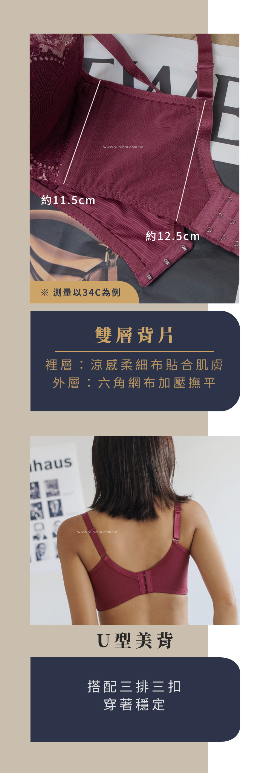 ★BC罩水水,集中托高的秘密武器! ★J型塑形軟鋼圈,集中性感更兼顧穿著舒適度 ★寬版的杯型,兩側肉肉能完整收納,扁寬胸型也沒問題 ★蕾絲延伸至肩耳,貼合上胸不易簍空還能修飾大小胸 ★內裡採用吸排洞洞布,透氣舒爽不易悶熱 ★加寬的副乳側壓片,收覆兩側小肉肉 ★B罩杯下厚上薄,加強托高集中效果,展現飽滿胸型 ★背片內層涼感柔細布親膚,外層六角網布撫平背肉 ★U型美背設計,搭配三排三扣 ★台灣製造,品質保證