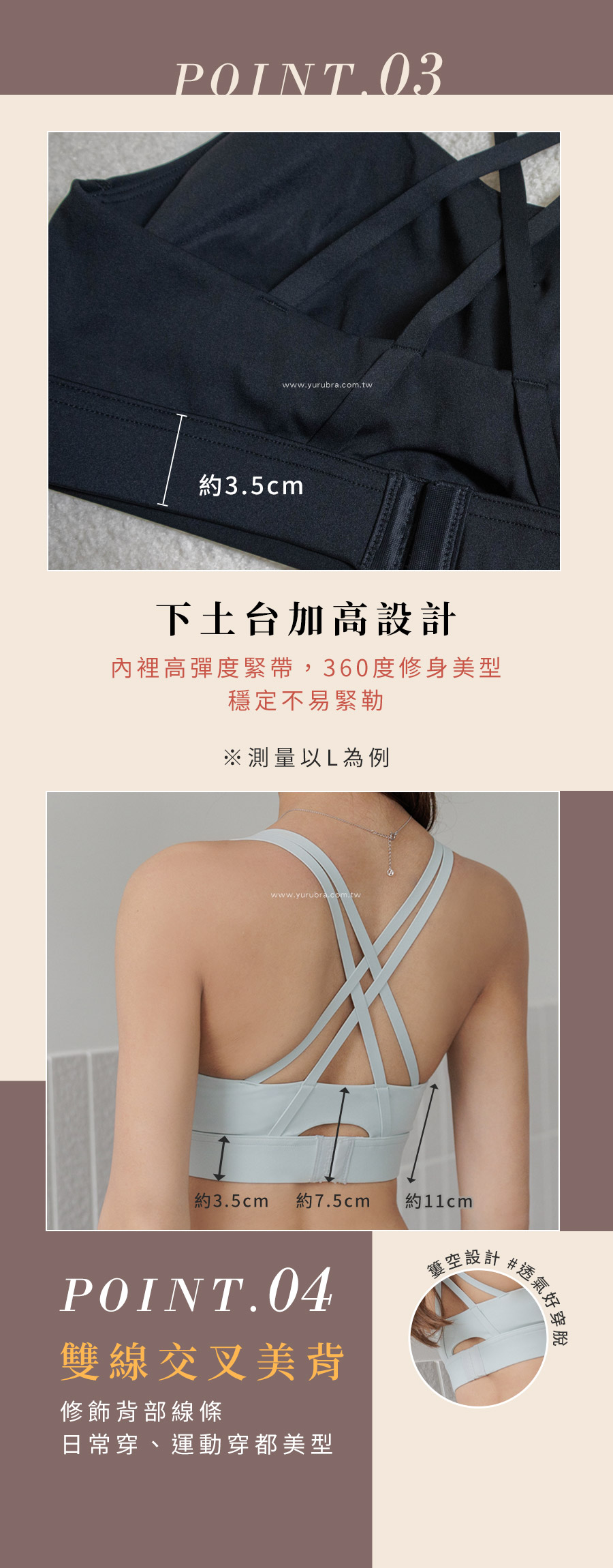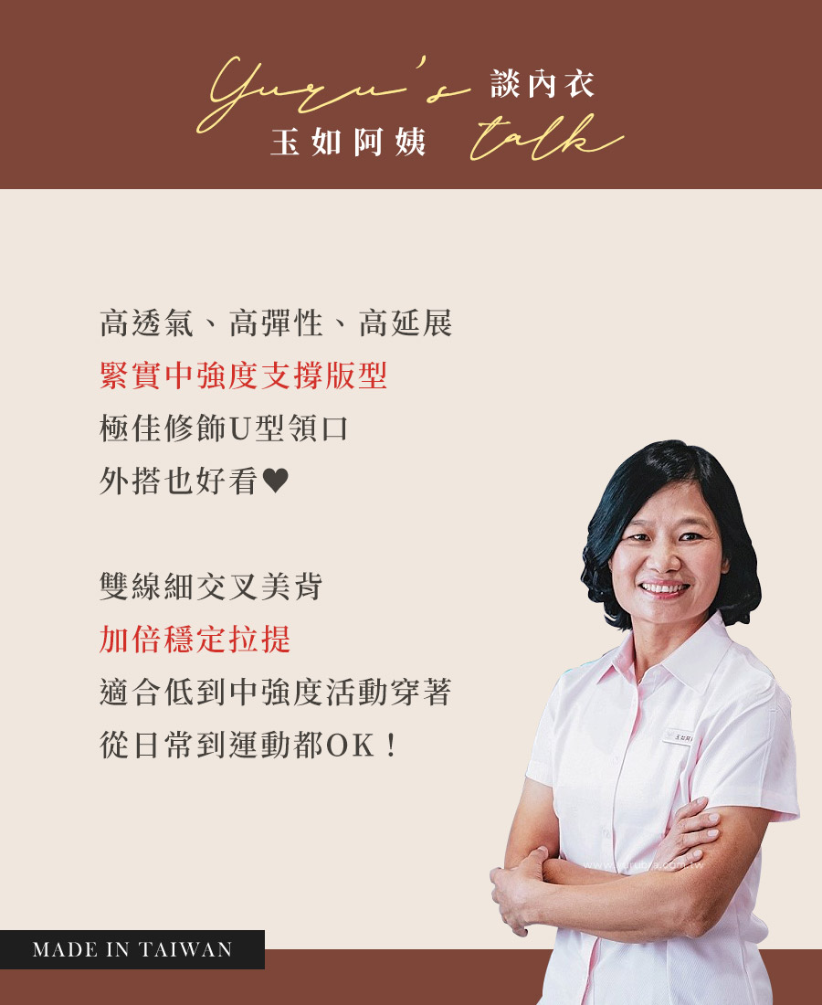 ★採用高回彈、高穩定面料,親膚透氣耐水洗 ★緊實中強度支撐版型,穩定托付 ★極佳修飾U型領口,外搭也好看 ★可拆式透氣連體杯,約1.5公分厚,即使無肉也能上托圓潤自然 ★腋下內切剪裁,包覆防副乳,舒適安穩不易晃動 ★高規緊實彈力布料,不壓迫不死緊,360度塑身美型♥ ★胸下擺加寬約6.5公分,服貼親膚,不易上捲更修飾胸下曲線 ★2.5公分內隱藏土台:加強穩定不走位 ★背部雙細交叉帶,加倍的穩定拉提,無法言語的絕佳修飾視覺 ★適合快慢走、跳舞、空瑜、慢跑、重訓、自行車等低~中強度的活動 ★日常上班到下班後的重訓活動都能應付 ٩(ˊᗜˋ)و ★3排2扣,穿脫更順暢容易 ★台灣製造,品質保證