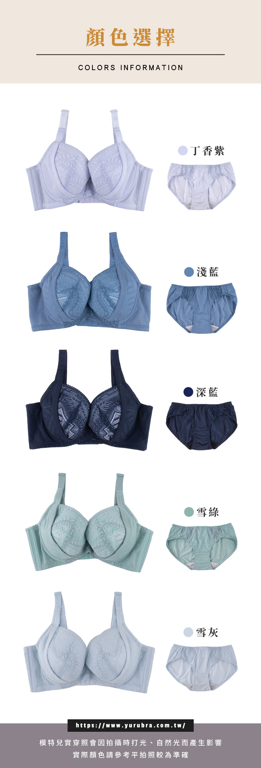 | BRA736F | 峰花盛放內衣 | 雪綠,雪灰,丁香紫,淺藍,深藍 |