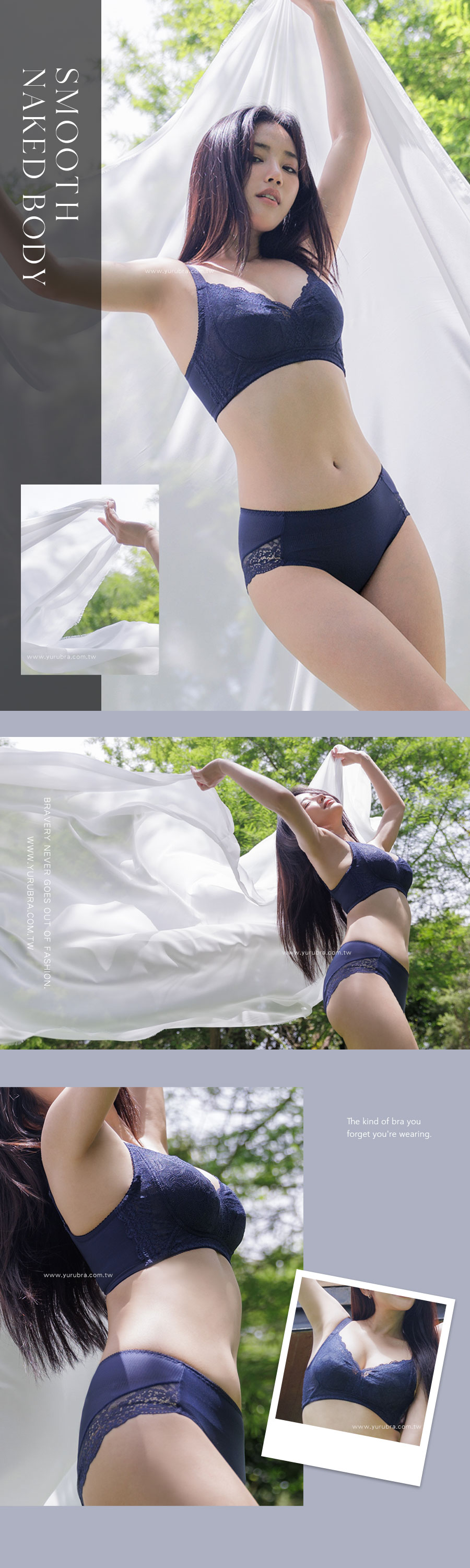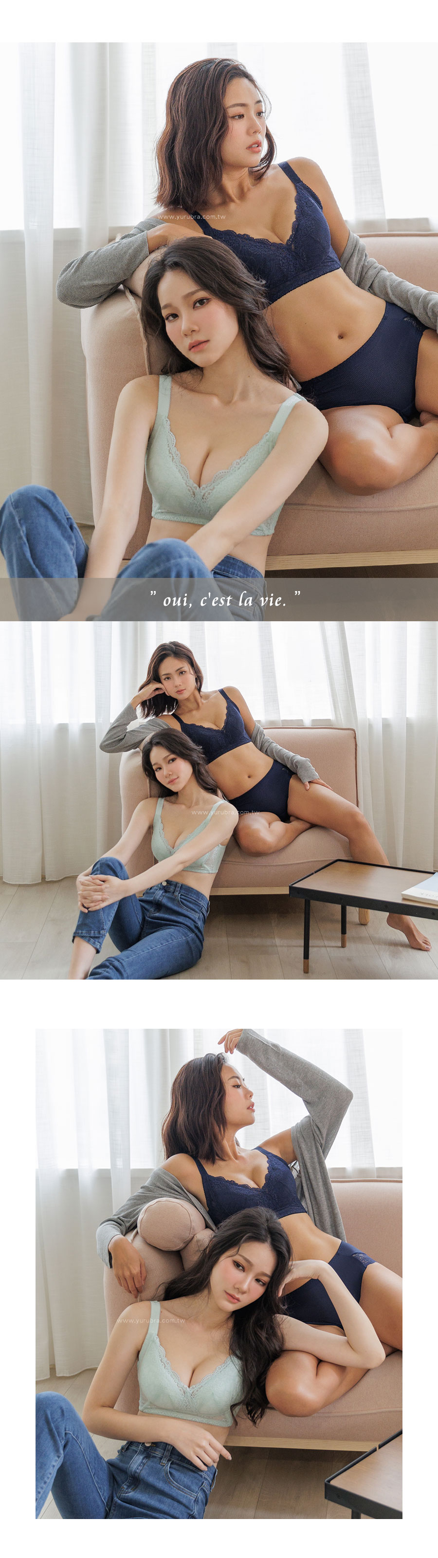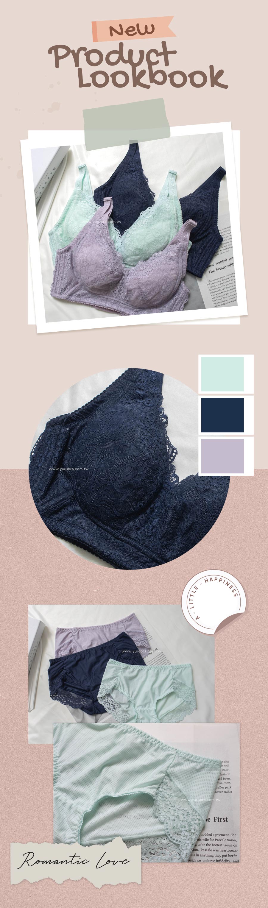 蕾絲:彈性纖維13%,嫘縈15%,尼龍72% 面料:彈性纖維25%,尼龍75% 杯裡:聚酯纖維65%,棉35%