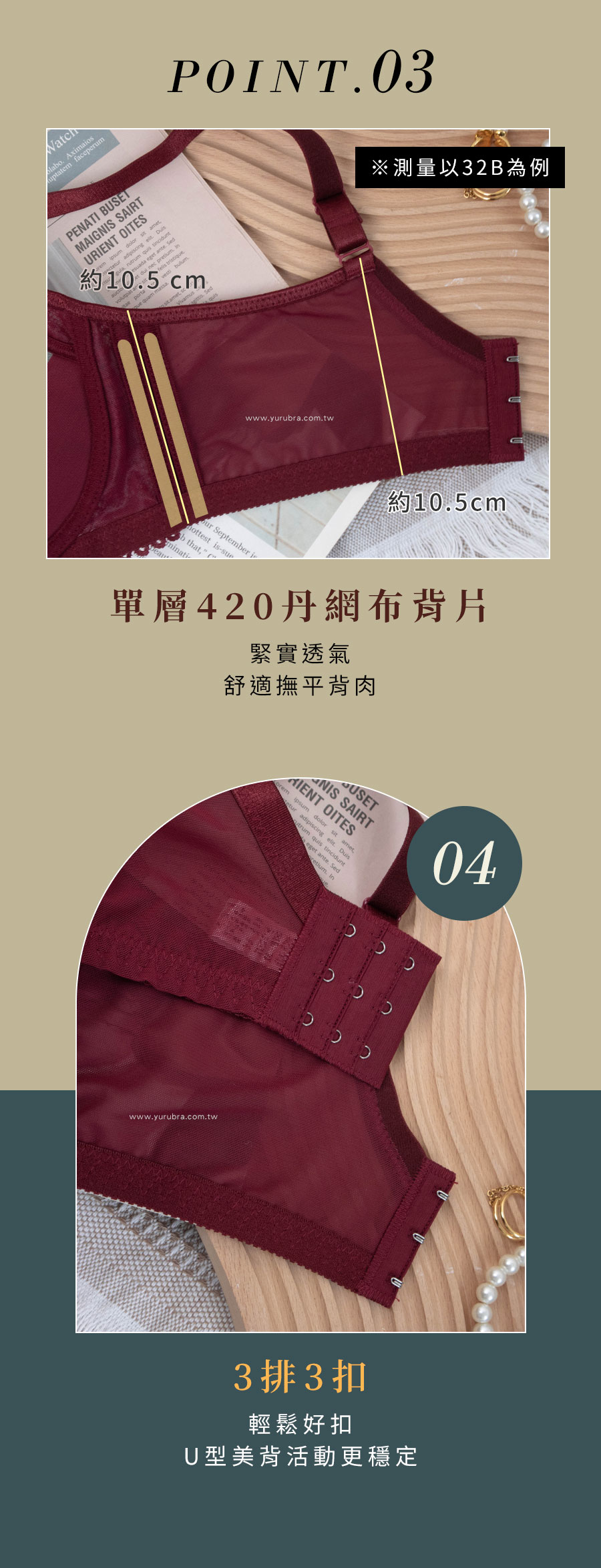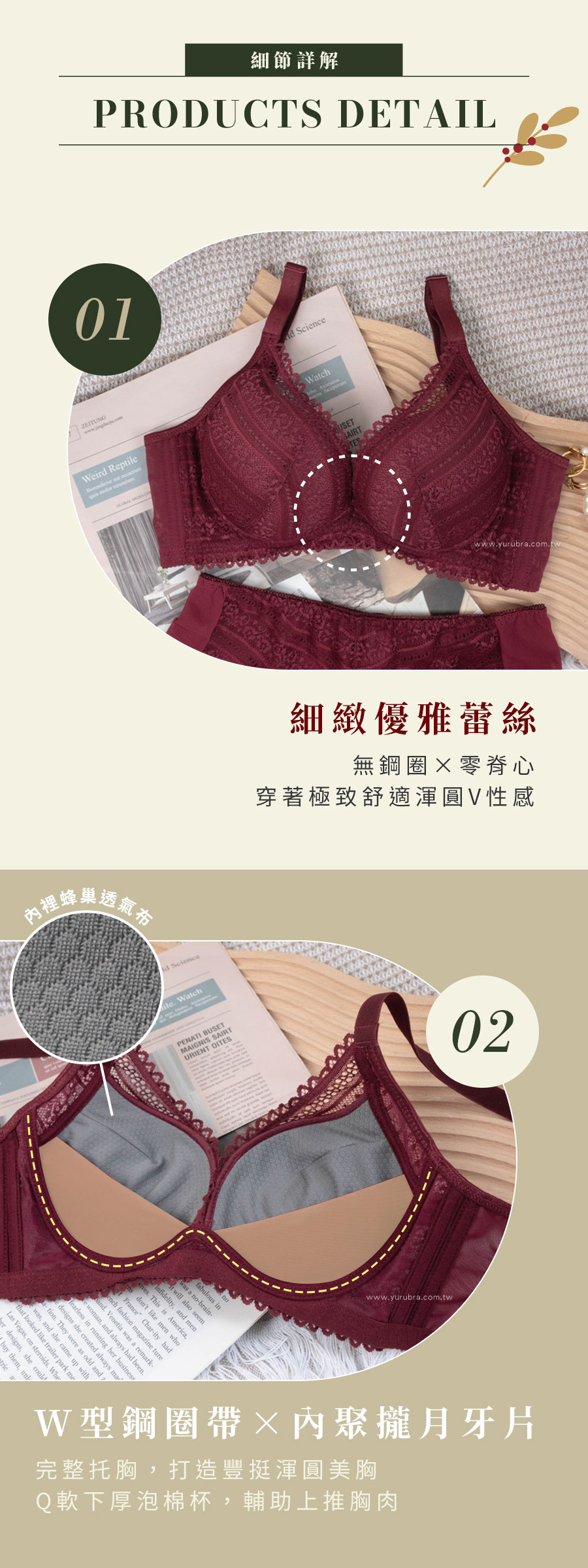★一根一線,如藝術般編織的小花蕾絲,典雅可愛 ★W型無鋼圈帶,舒適托胸 ★杯裡內聚攏月牙片,強力上托並拉近胸距,塑造渾圓胸型 ★零脊心×無鋼圈,極緻舒適不易壓迫 ★內裡布料含石墨烯,舒適透氣 ★無鋼圈布條,親膚柔軟,胸骨凸、雞胸、胃凸的女孩都適合! ★腋下雙膠條,穩定腋下肉肉 ★U型背片,舒適包覆背部 ★台灣製造,品質保證