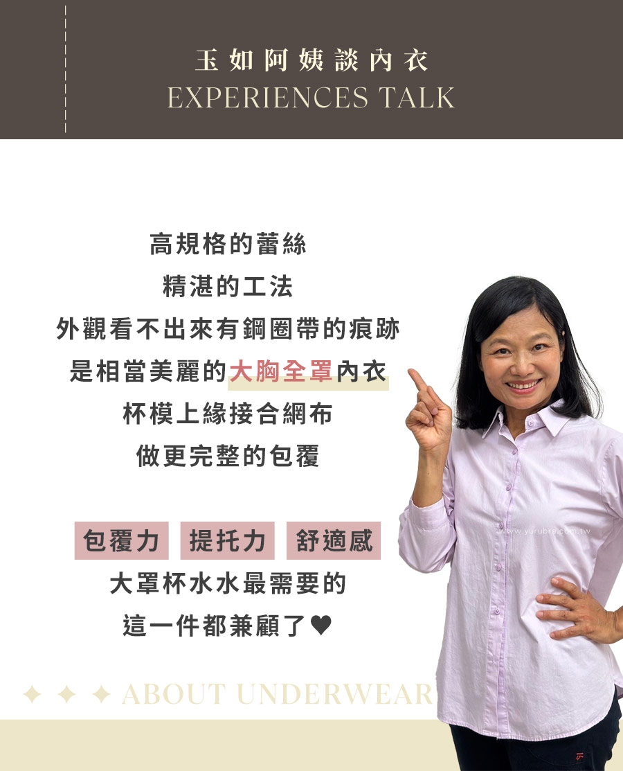 ★包覆力、提托力、舒適感,大胸水水需要的,通通都在這一件! ★採用高規格蕾絲,外觀無鋼圈帶痕跡,是內外兼備的大胸美型全罩內衣 ★蕾絲層疊如夜晚星芒,低調內斂又藏不住自身的光芒 ★內裡採膨膨透氣絲棉,S型上揚與三片式剪裁,提托包一件搞定 ★側土台雙層設計,棉布舒適貼近肌膚,無彈網布加壓撫平側肉 ★下土台採1.8公分寬絨布緊帶,脊心處做交叉剪裁,讓胸肉更靠近、下圍更釋壓 ★特殊規格2.2公分寬肩帶,分散肩膀承受的壓力,還有貼心的止滑設計喔 ★雙膠條撫平腋下肉肉,並鎖住胸肉不往後游移 ★背片採雙層加高塑身網布,包覆撫平全部到位 ★三排四扣設計,提升穿著穩定性 ★台灣製造,品質保證