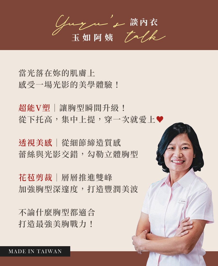 ★透視蕾絲×光影美感:若隱若現精緻美學,打造時尚內衣新高度♥♥ ★透視花苞設計再進化:是一場「美胸革命」!側推內聚集中強力拉提! ★水滴型罩杯:打造圓潤飽滿的胸型,視覺升級! ★採用透氣絲棉:讓胸部輕盈呼吸,一整天都舒適不悶熱 ★J型鋼圈×挺立結構:從下而上托高,讓胸型更立體 ★分段推進式背片:收復失土,守護江山!集中火力,往前爆衝! ★腋下雙膠條設計:24H穩住美胸線條 ★U型美背+三排三扣,穩定支撐並美化背部曲線 ★不論什麼胸型都適合,極致包覆,打造最強美胸戰力! ★台灣製造,品質保證