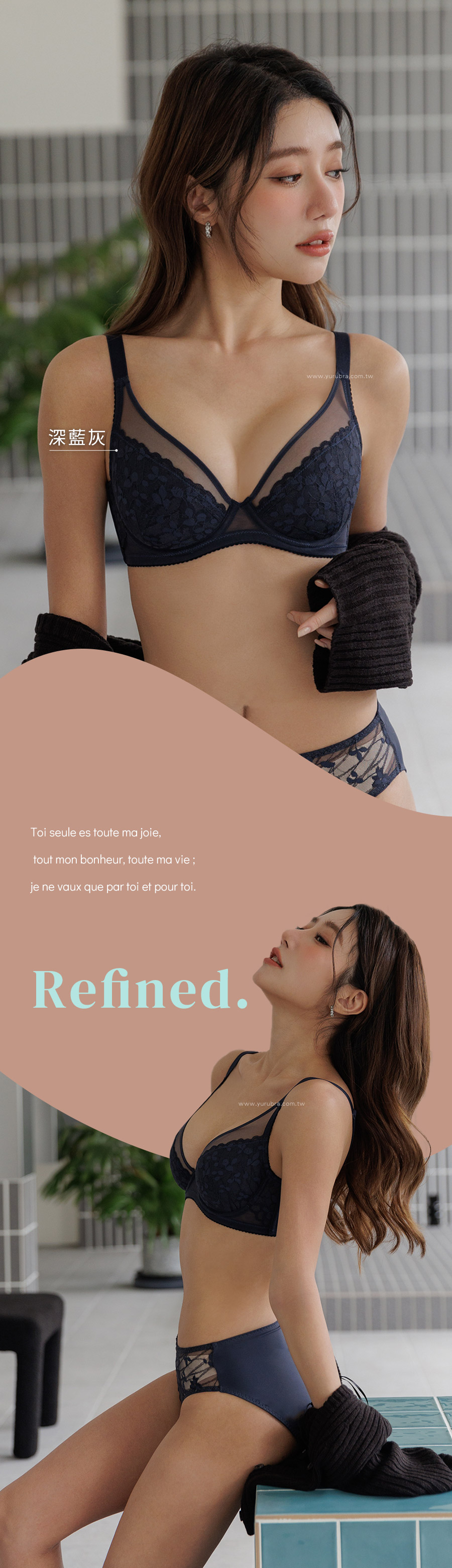 | BRA799 | 優雅的總和內衣 | 杏,深藍灰 |