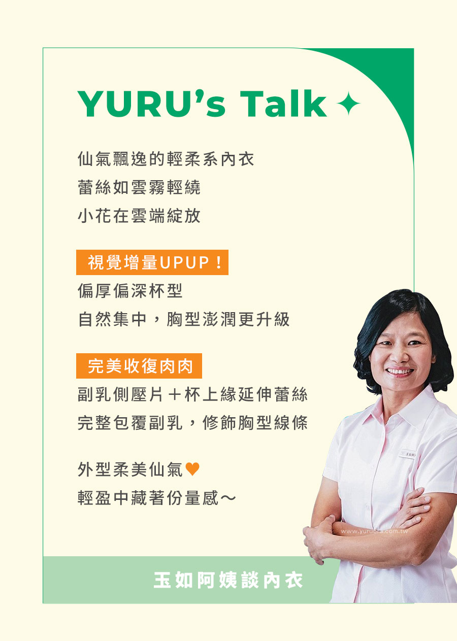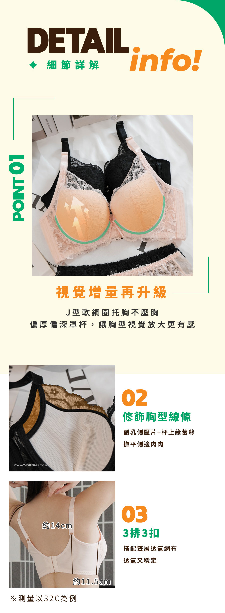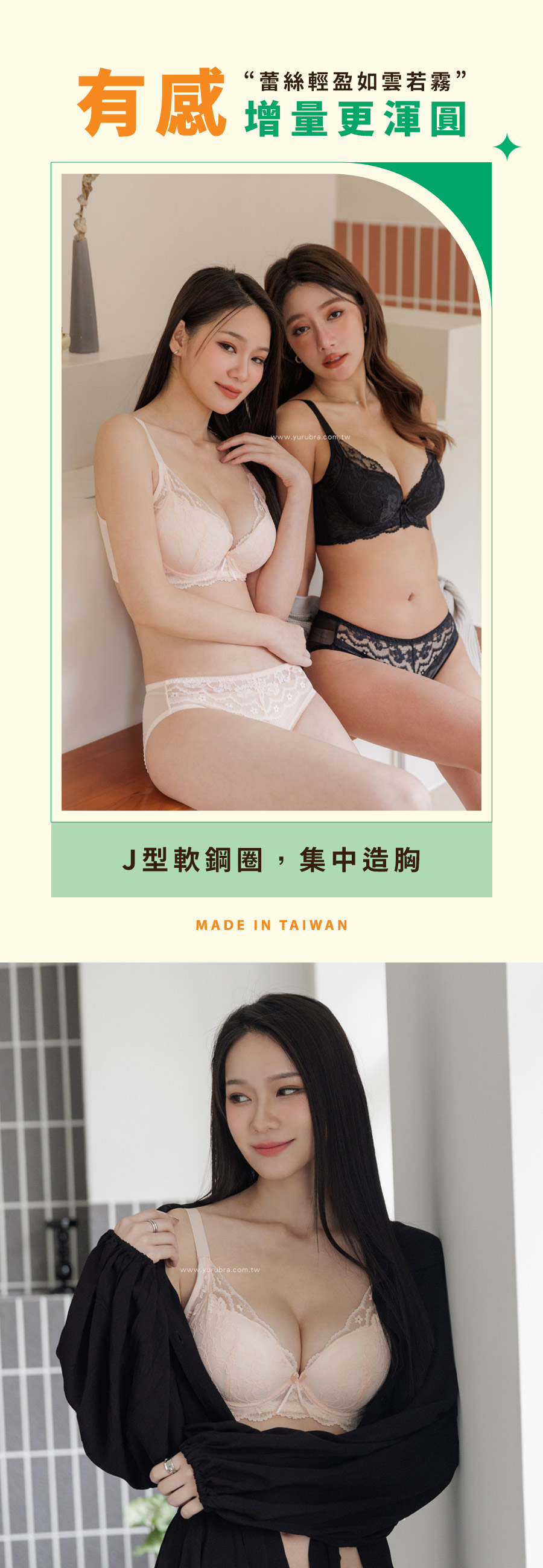 ★蕾絲輕盈如雲若霧,微微透出肌膚更添柔美 ★杯模內裡透氣洞洞布,溫柔包覆胸部不易悶熱 ★B罩下厚約2cm,有感增量更渾圓 ★J型軟鋼圈,集中造胸 ★側邊雙膠條,加強穩定不易跑位 ★背片雙層透氣網布×三排三扣,舒適穩定 ★台灣製造,品質保證