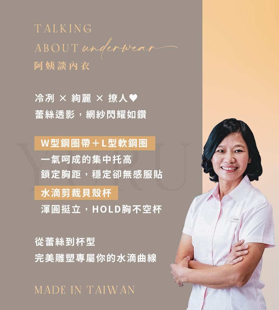 ★如冰晶般純粹的蕾絲花紋,清爽的色系更添一分舒淨感 ★L型軟鋼圈×W型無鋼圈帶,輕盈集中舒適 ★挺立杯型,如貝殼般HOLD住兩側肉肉 ★雲Q綿杯模,溫柔托胸,輕薄不厚重 ★胸前V字型網紗,視覺集中,更兼具服貼修飾的效果 ★B罩杯下厚上薄,加強托高集中效果,展現飽滿胸型 ★單層網紗背片,穩定、活動起來也不易悶熱 ★U型背部設計×三排三扣 ★台灣製造,品質保證