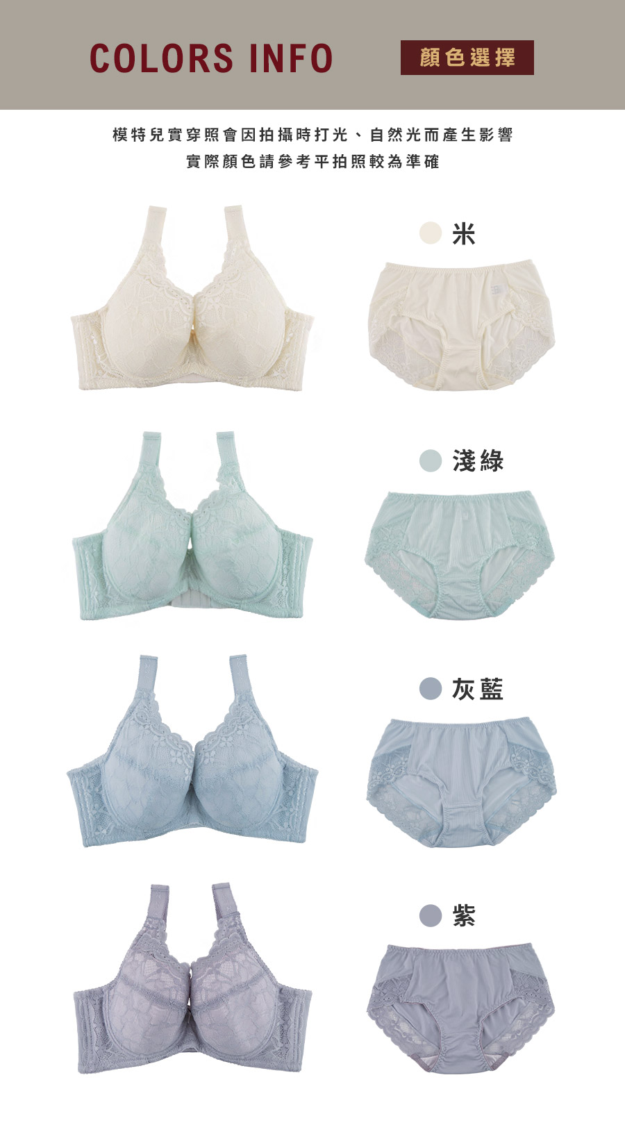 | BRA817 | 沐光序曲內衣 | 灰藍,米,淺綠,紫 |