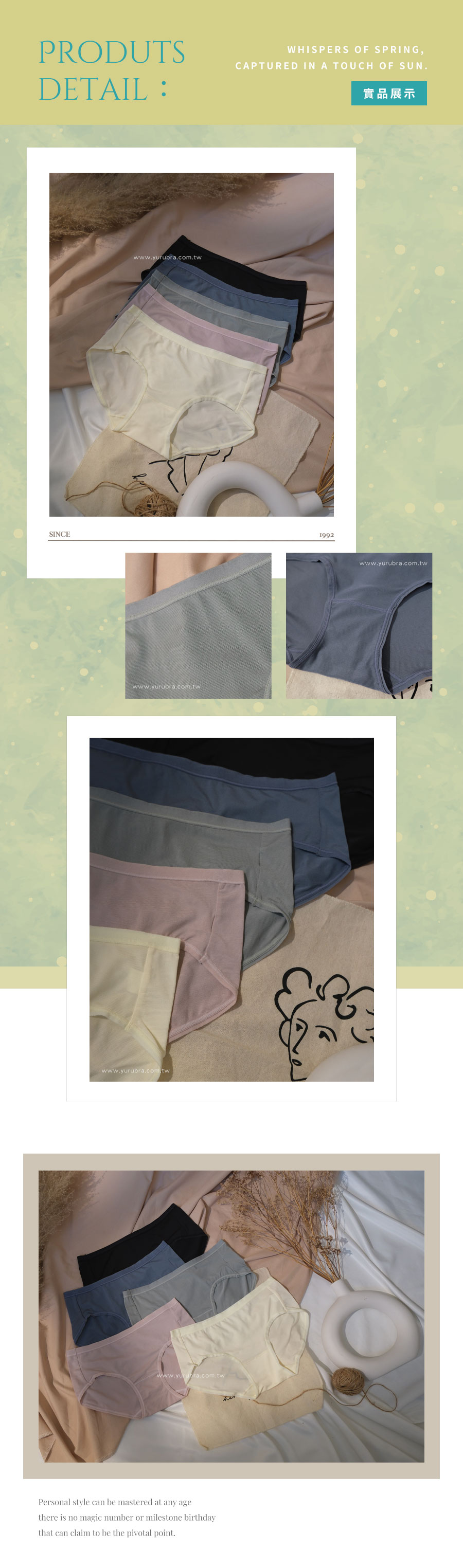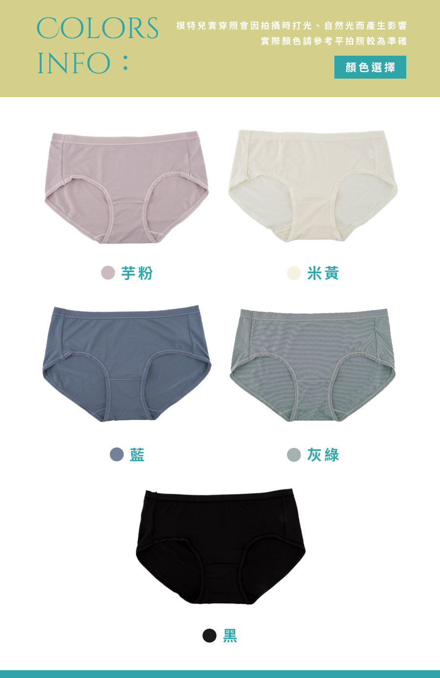 | K124 | 輕盈膠原親膚三角褲 | 米黃,灰綠,藍,芋粉,黑 |