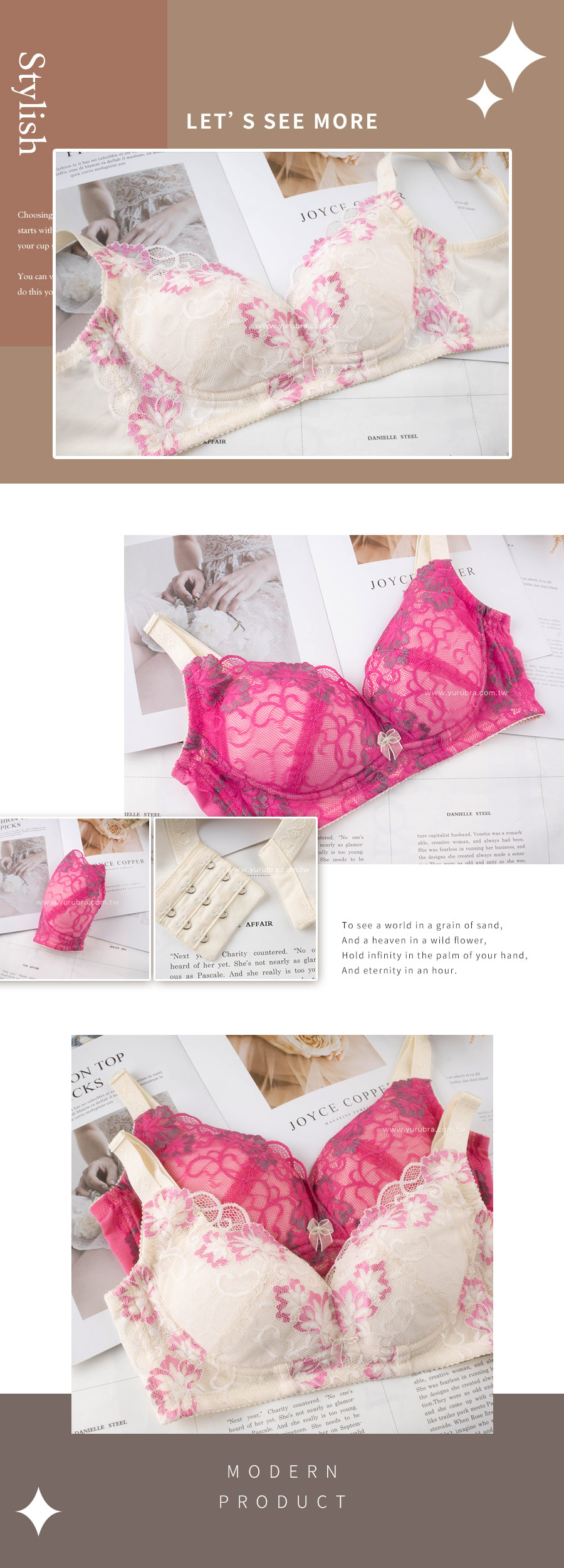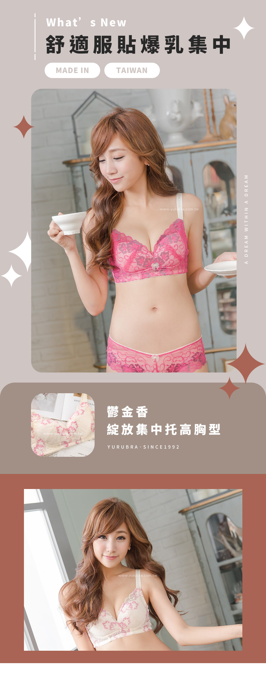 | S185 | 夢幻鬱金香內衣 | 桃,香檳 |