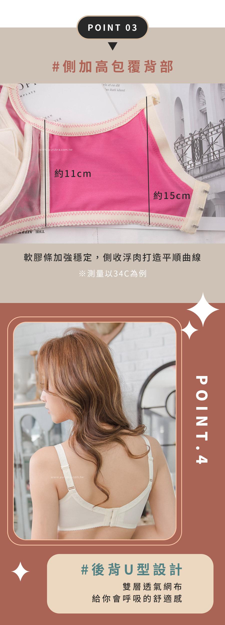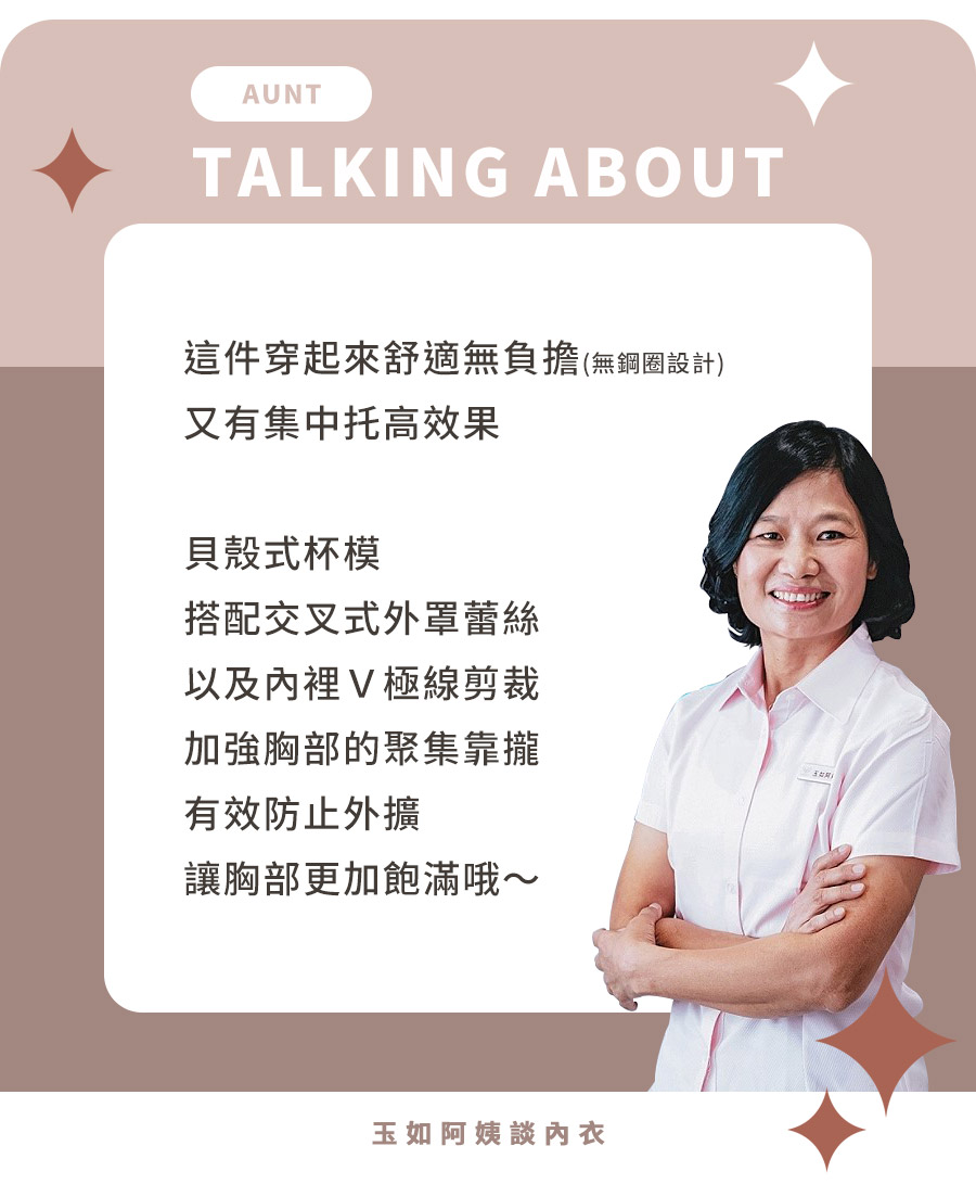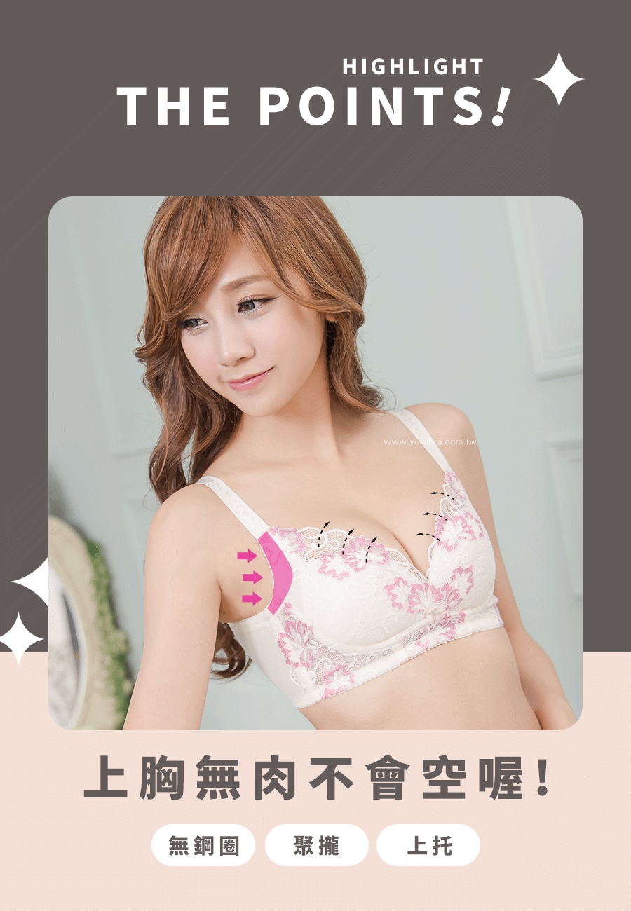 ★完全無束縛感,給你100%的舒適新體驗 ★無鋼圈內衣,不止舒適更會集中爆乳! ★雖然沒有鋼圈,但是下土台加寬約2.5公分,一樣穩定 ★貝殼型杯模,加上V型剪裁,會將胸部往中間集中 ★斜側壓剪裁更能將胸部集中推進再推進 ★擁有副乳側壓片設計,打擊副乳完全勝利!! ★內裡還有水餃墊貼心設計,更能按照實際狀況做增減 ★後背機能型設計,加高加寬,雙層透氣網布給你會呼吸的舒適感 ★台灣製造,品質保證