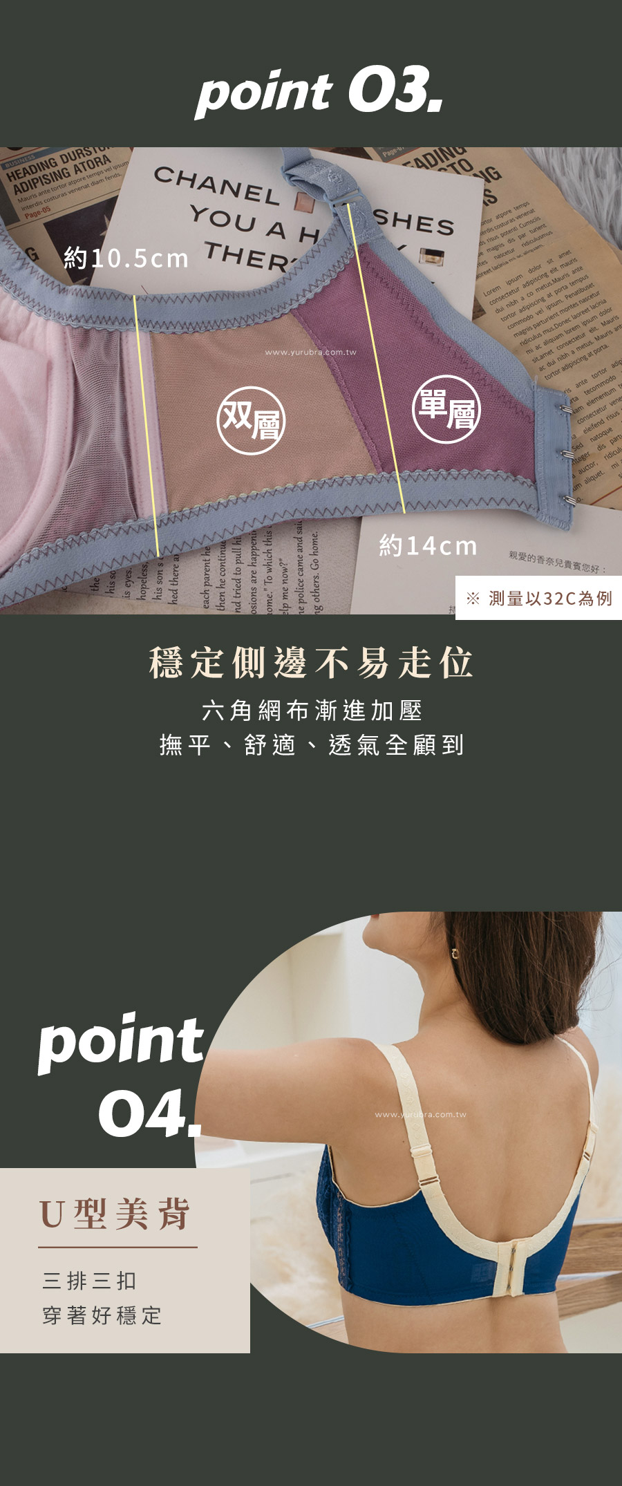 ★經典不敗版型,胸型立體,視覺超吸引! ★跳色的設計,讓整體造型顯現輕巧活潑有變化 ★外提托帶從下胸延伸到肩帶,拉提胸肉更集中飽滿 ★杯模S型上揚側推拉提剪裁,內彎設計不易簍空 ★杯模連接肩耳處採揚角設計,連接鬆緊帶加倍拉揚 ★薄絲棉內裡穿著好舒適,內附水餃襯墊可自行添減唷 ★腋下膠條設計,能夠穩定側邊讓肉肉不易走位 ★背片採六角網布做漸進式加壓,兼顧撫平與舒適 ★U型美背搭配三排三扣,穿著好穩定 ★台灣製造,品質保證