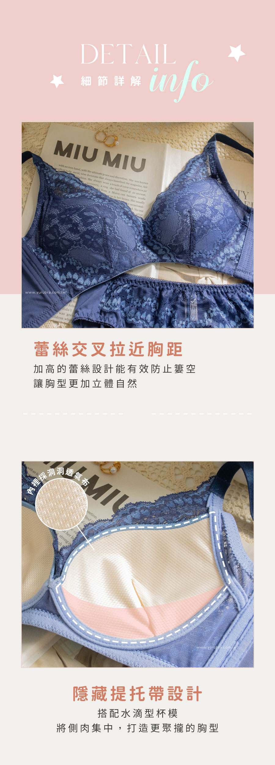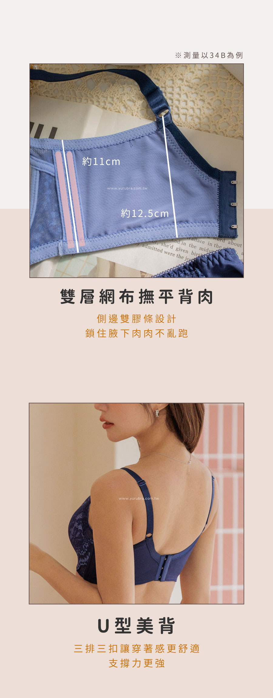 ★上緣蕾絲內彎剪裁,服貼上胸不易簍空 ★杯模隱藏提托片,輕盈托胸 ★副乳側壓片接合加高蕾絲,是副乳的最佳守門員 ★蕾絲在脊心做交叉設計,拉近胸距讓視覺更顯集中 ★V溝剪裁×內貼蕾絲版型,貼合包覆上胸及修飾大小胸 ★B罩下厚約2CM,上托下胸的肉肉讓胸型更加飽滿 ★雙層六角網布背片,穿著包覆又穩定 ★三排三扣,輕鬆調整、穩定好穿脫 ★台灣製造,品質保證