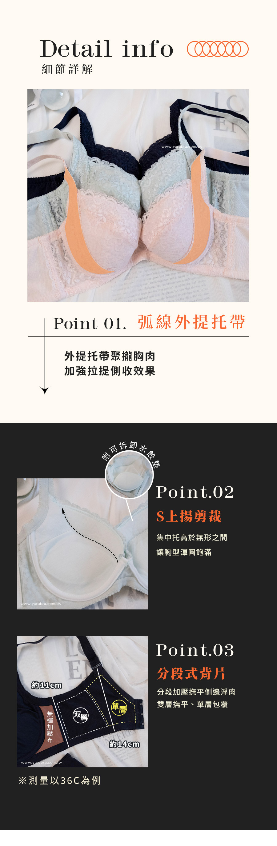 ★經典不敗版型,兼具機能與美感 ★升級版S上揚剪裁,加強胸部的側推、上提、前包覆 ★雙側弧線提托帶,拉提側收效果非常好 ★杯緣內彎設計,貼合上胸不易簍空 ★側片分段式加壓剪裁,加強撫平側邊浮肉與舒適修飾背部曲線 ★U型美背與三排三扣設計 ★台灣製造,品質保證