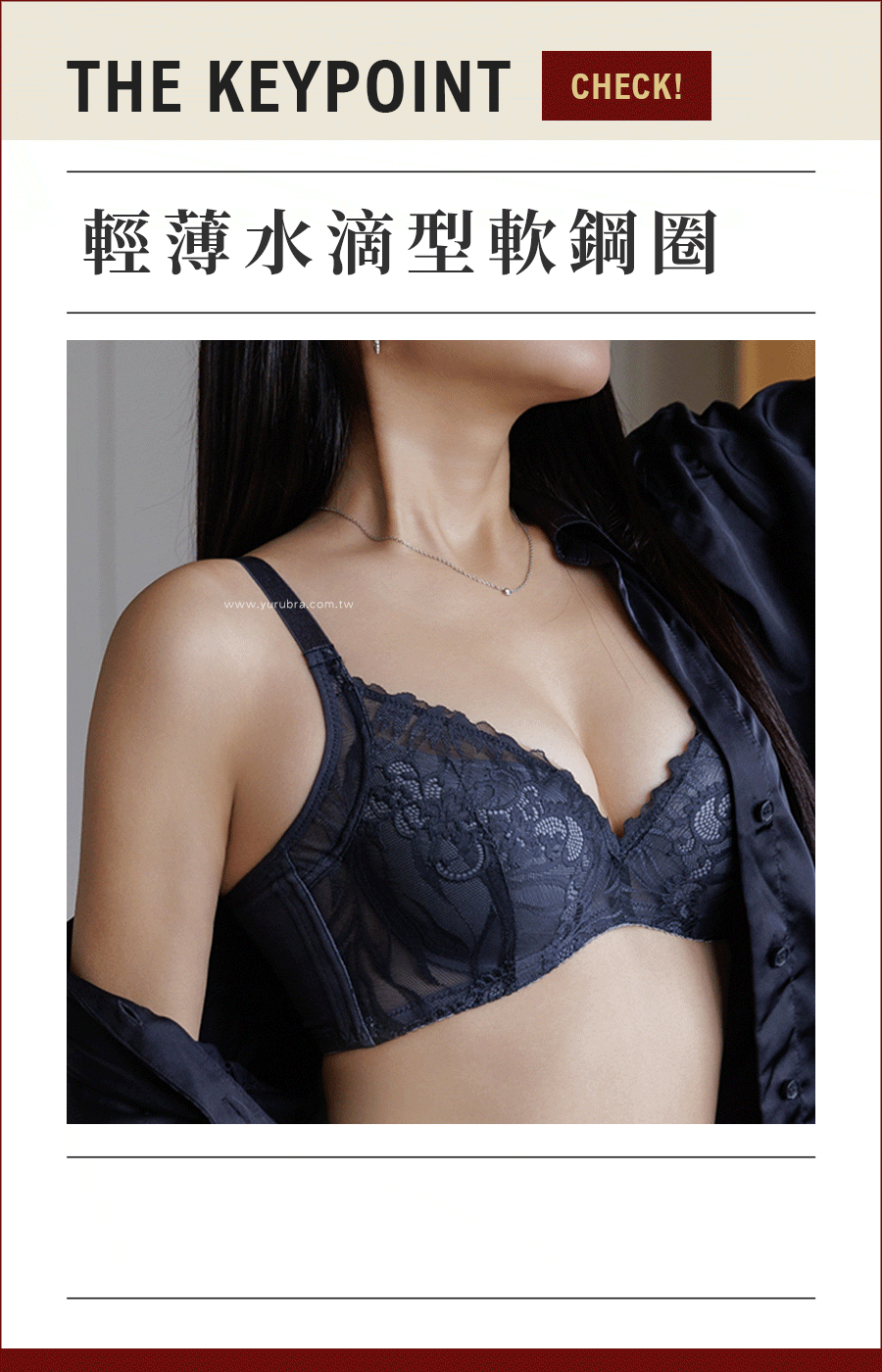 ★重重交疊的花紋如光影共舞,勾勒出無盡的神祕曲線 ★水滴型剪裁,超顯深溝的胸前V字蕾絲 ★B罩下厚約2cm,偷偷的增量更顯渾圓 ★J型軟鋼圈,側邊包覆更集中 ★背片雙層網布,力道緊實不死繃 ★雙層網布背片,包覆不易悶熱~ ★U型背部設計,三排三扣穩定舒適 ★台灣製造,品質保證
