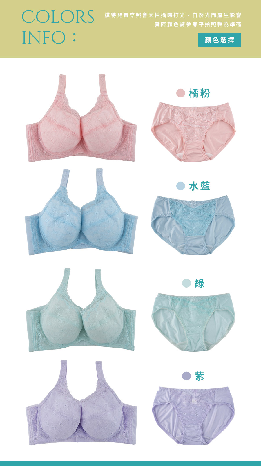 S249 甜蜜宣示內衣 水藍,綠,橘粉,紫