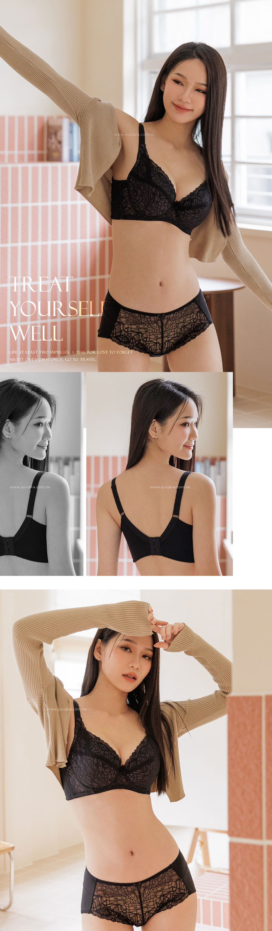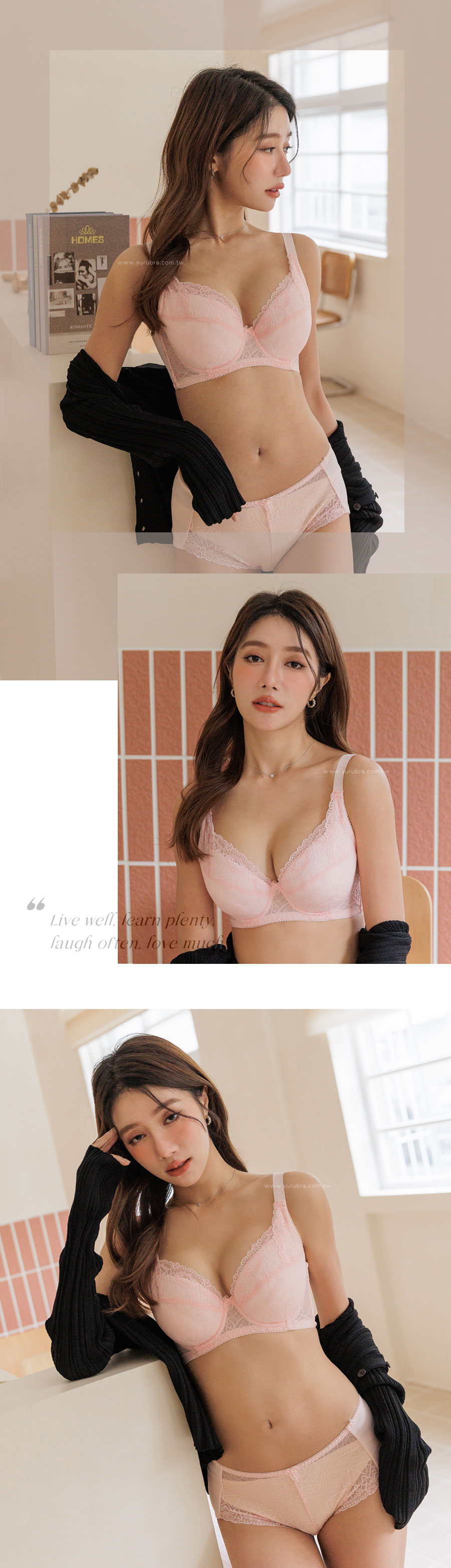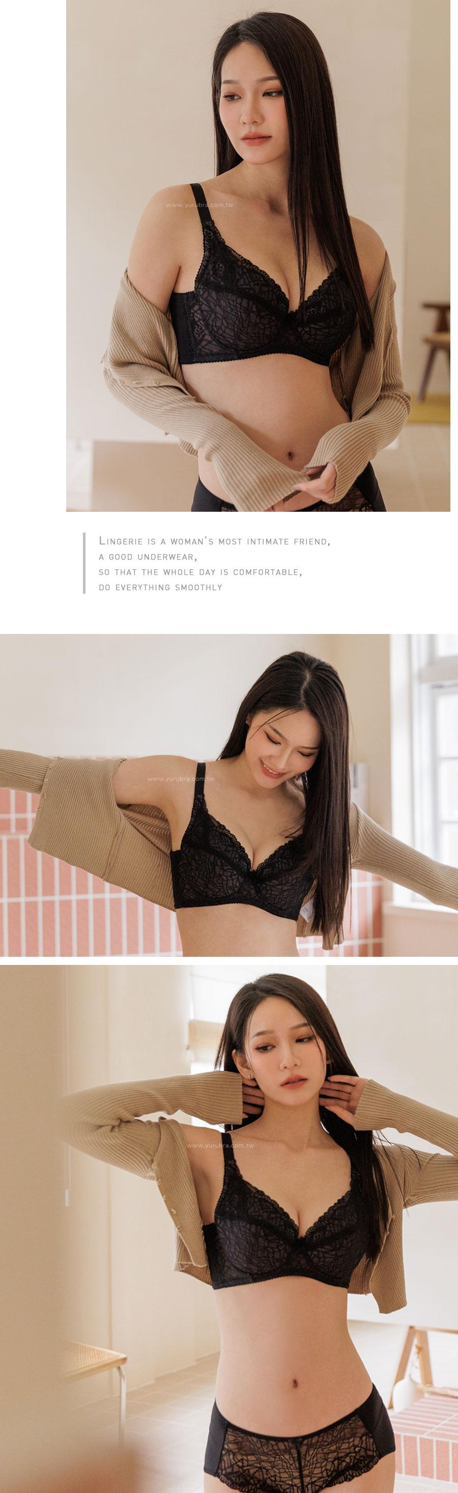 蕾絲:彈性纖維13%,嫘縈15%,尼龍72% 面料:彈性纖維25%,尼龍75% 杯裡:聚酯纖維65%,棉35%